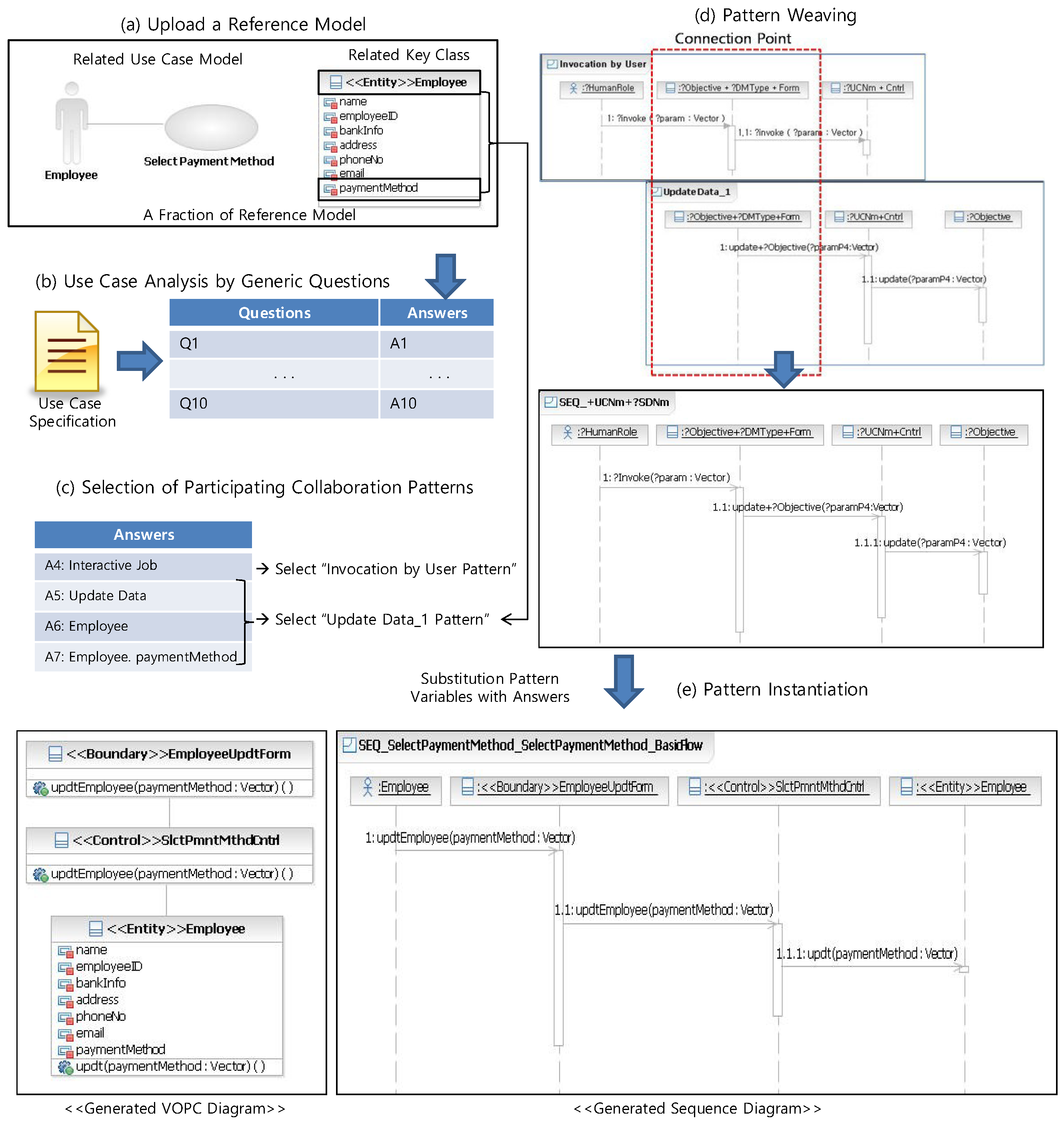 Pattern Instantiation: The answers from the questions are mapped to CRA pattern instances, enabling automated generation of sequence diagrams, class models, and operations.