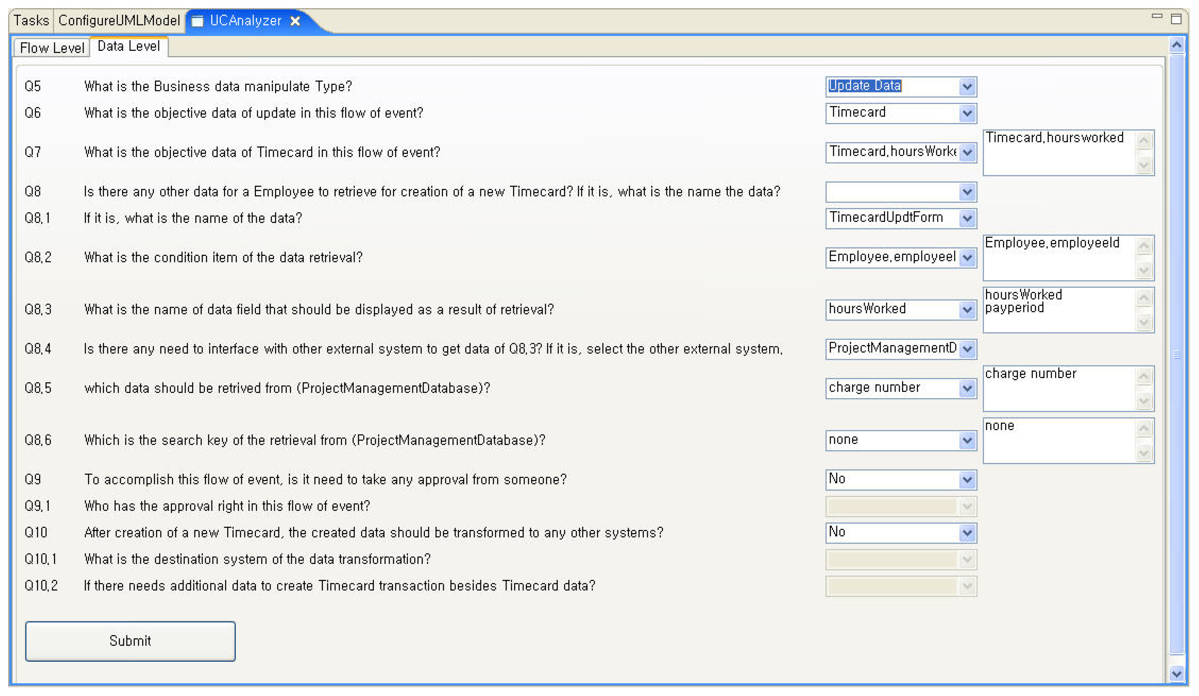 UC Specification Analysis: The analyst extracts key parameters from use case specifications by responding to predefined questions.
