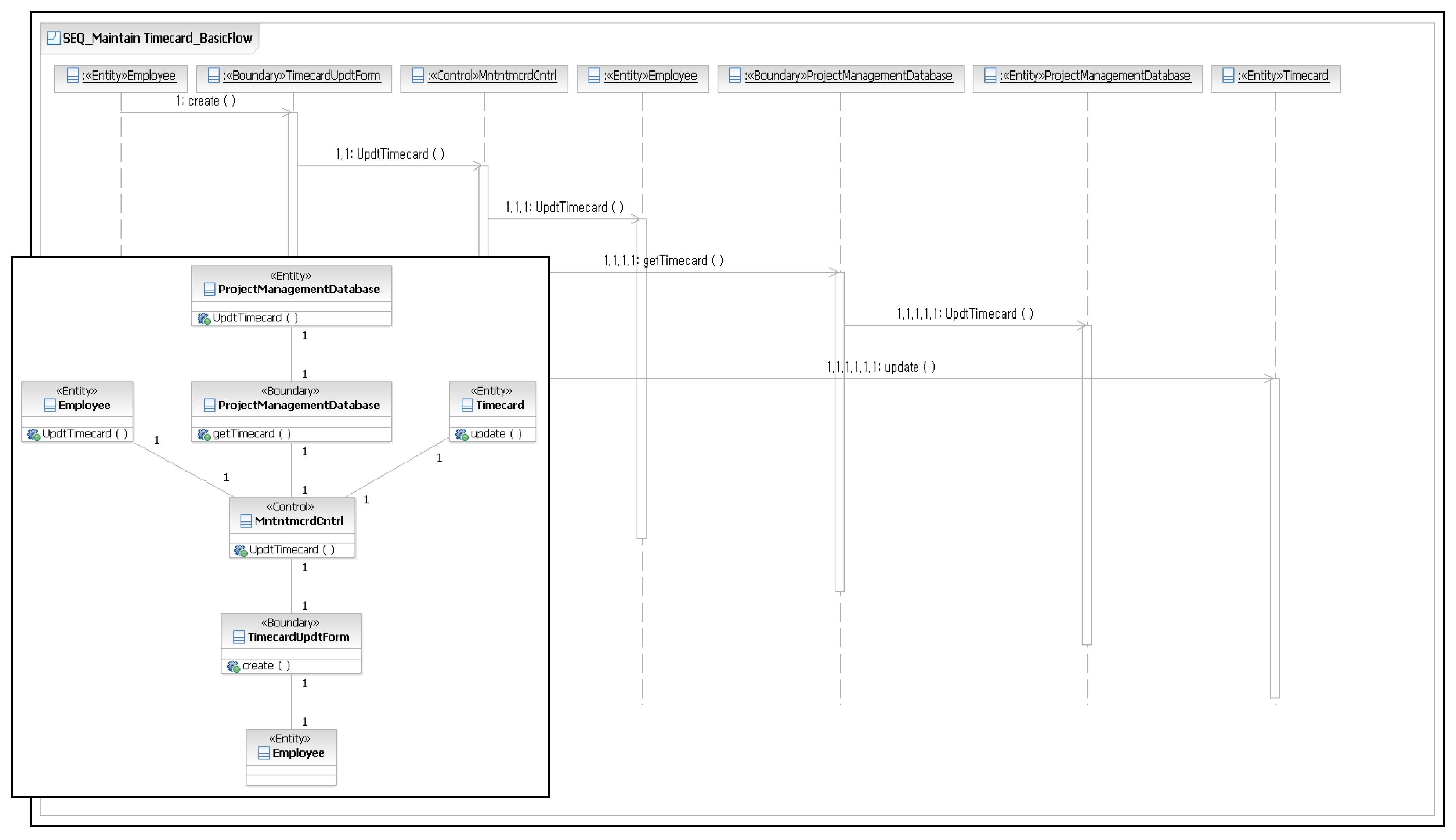 Section 5.2 reviewed the simultaneous automation of analysis and trace models by CRSensor, real-world business analysis projects often require repeated refinement and expansion following initial automation. As analysts introduce new classes, attributes, relationships, or domain-specific changes within UML tools such as RSA, the event detection policies of CRSensor ensure that all changes remain integrated within the traceability structure. System-level monitoring, without access to source code, captures every manual change as it occurs, recording them in the trace model in real-time.