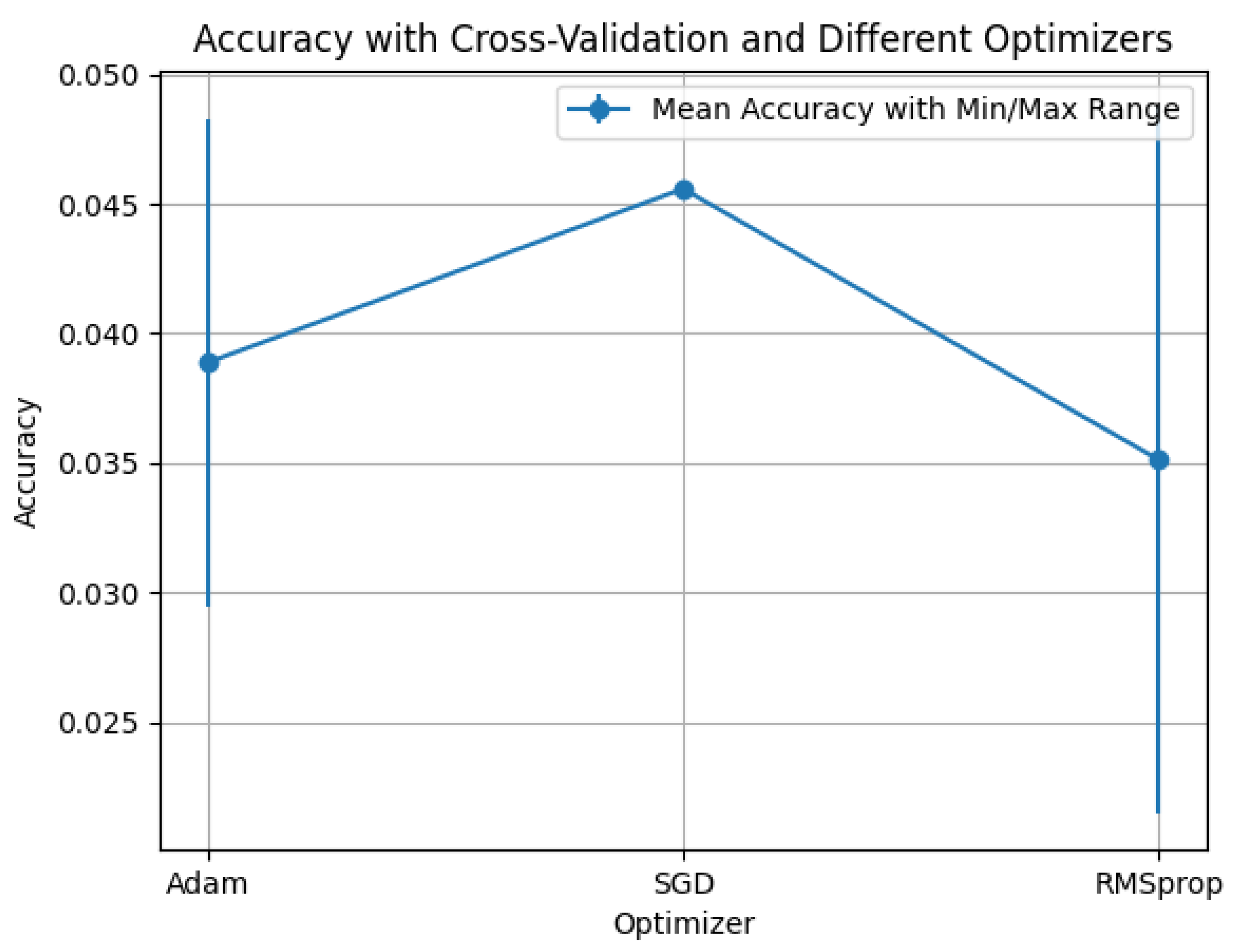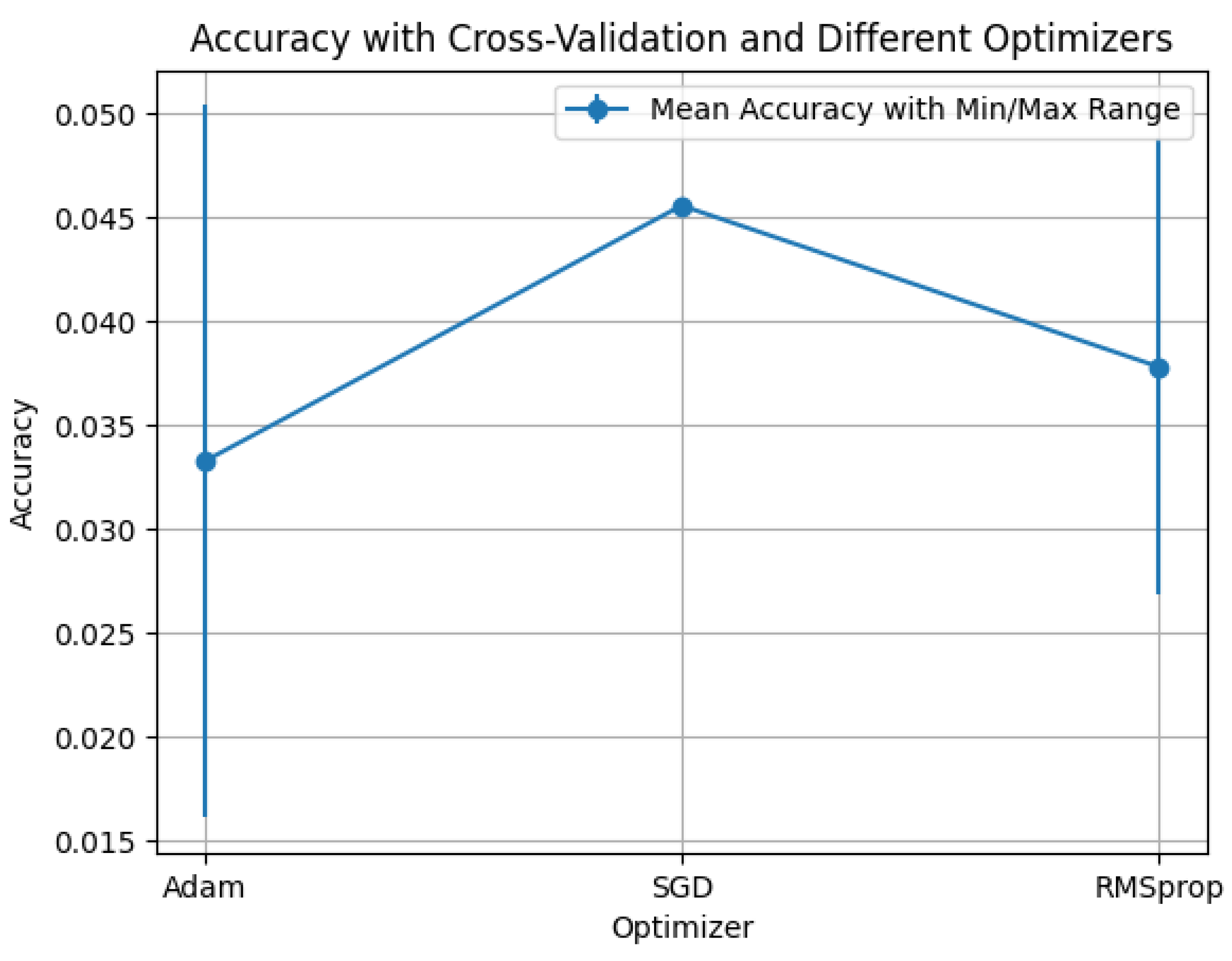SGD); curves report mean accuracy with min–max error bars over folds/seeds.