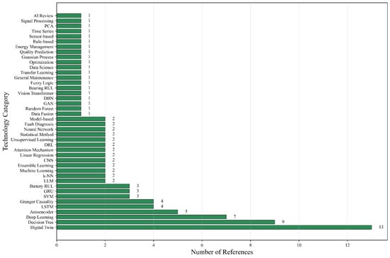 Figure 4 provides a comprehensive overview of the technical methods employed in predictive maintenance research, demonstrating the predominance of deep learning approaches in contemporary literature. This distribution reflects the evolving landscape of PdM methodologies and their relative application frequencies across various automotive subsystems.