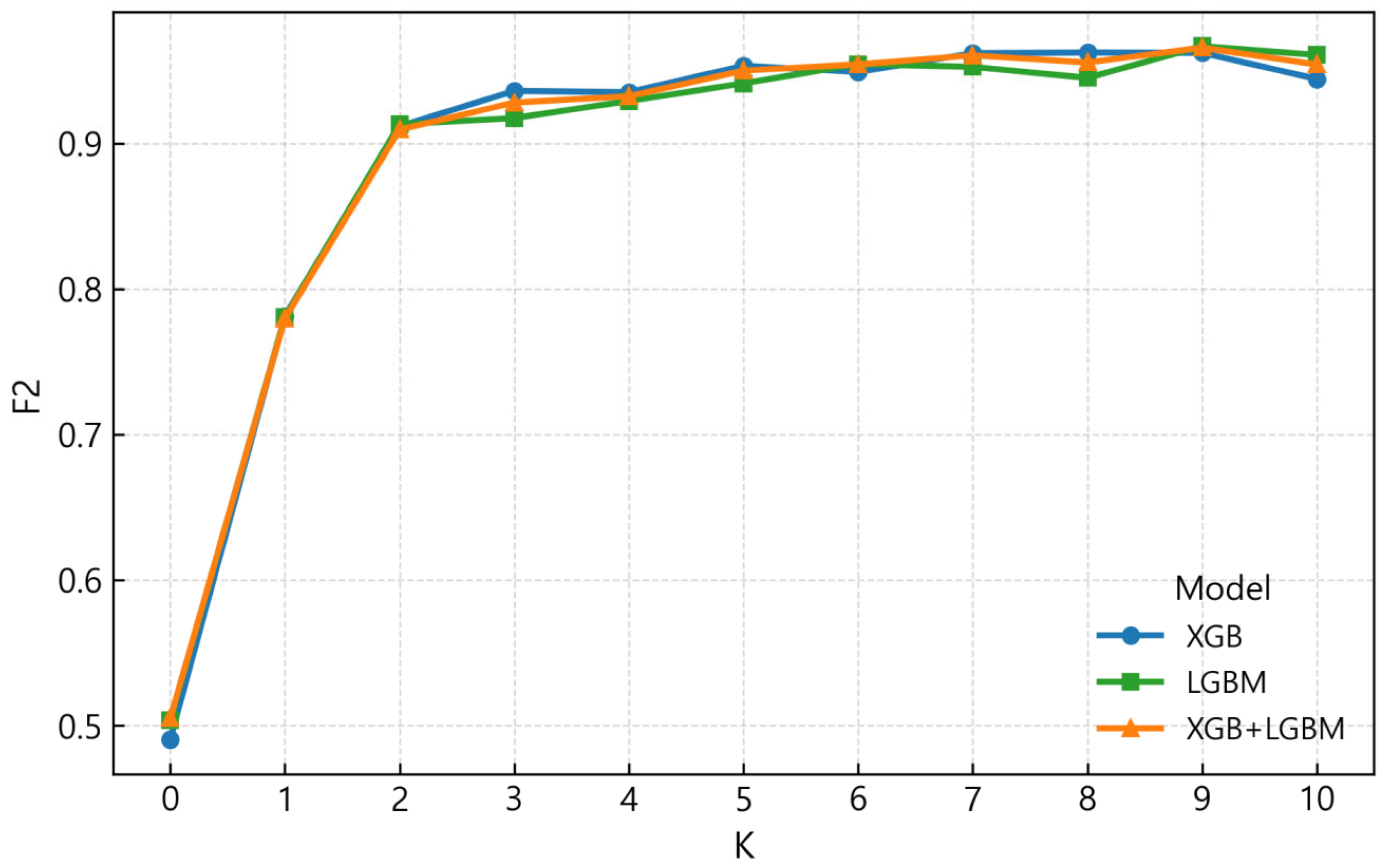 XGB + LGBM (K = 2) | 0.910 | 0.962 | 0.960 | 0.992 |