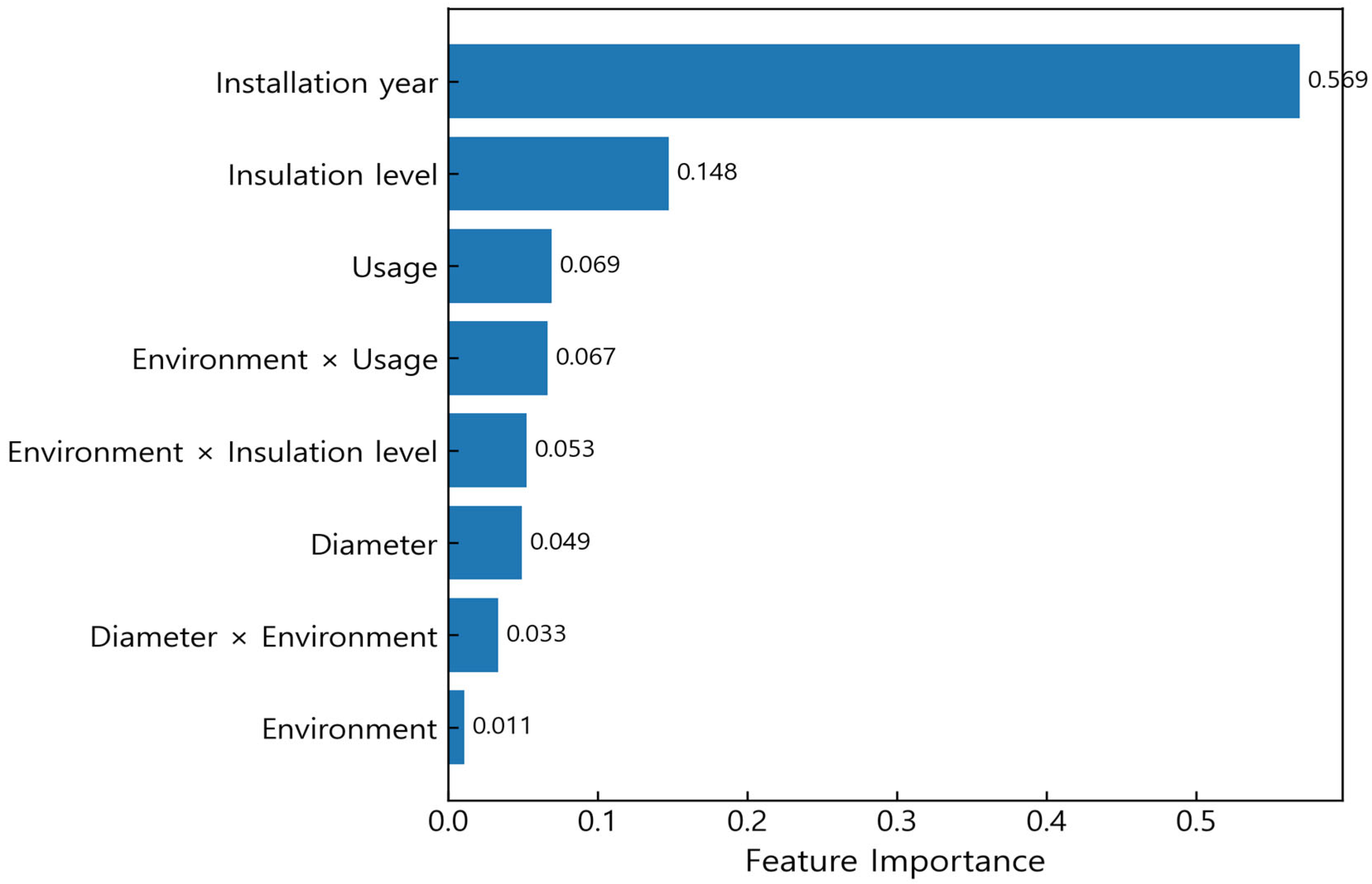 Diameter | Insulation level | Year of burial | Purpose | Burial environment | Diameter × burial environment | Insulation level × burial environment | Purpose × burial environment | High-risk of failure |