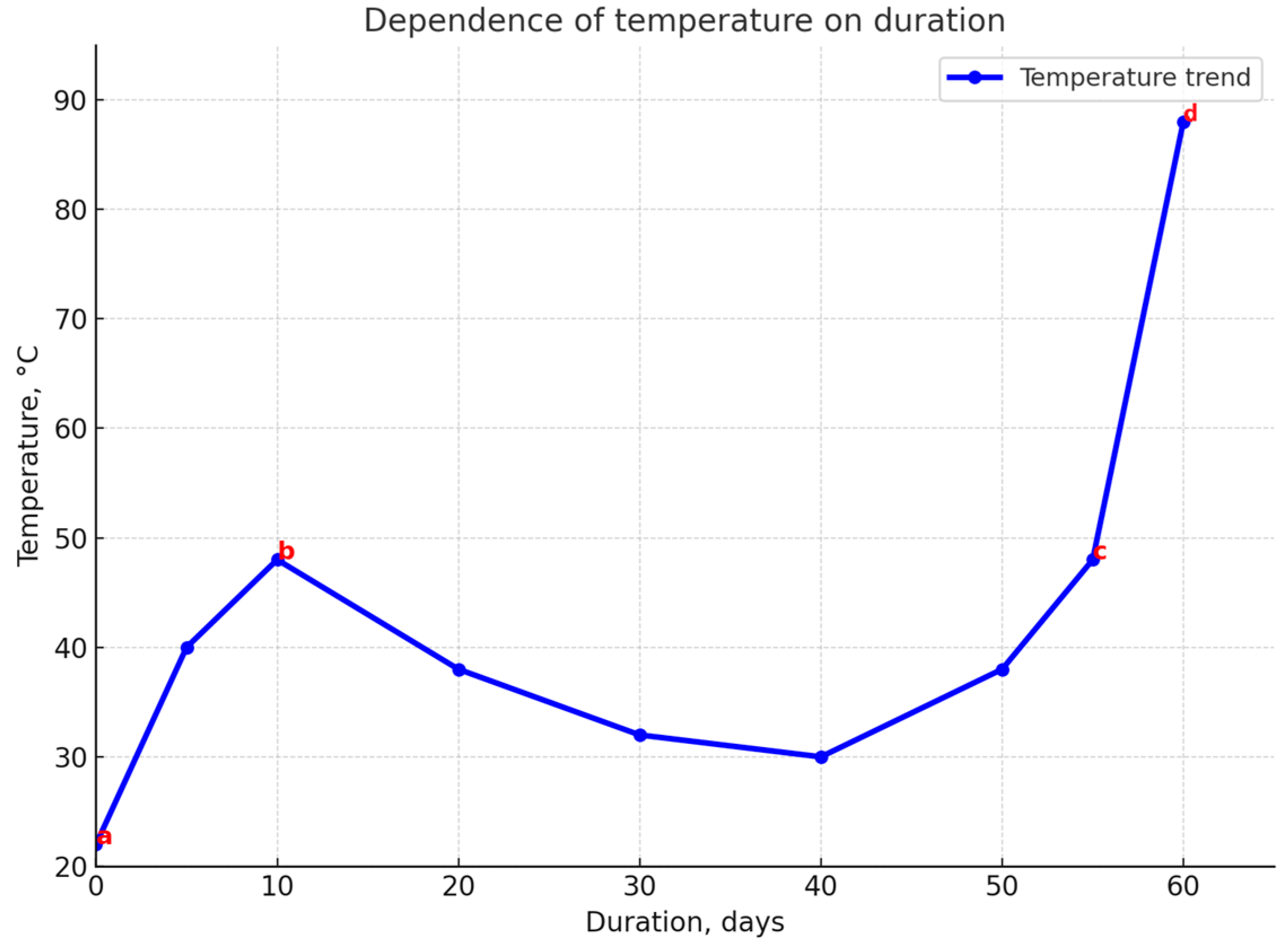 To verify the model, an integral criterion was applied that considers the ratio between carbon monoxide release and oxygen consumption. The results showed a stable increase in CO/ΔO2 values at temperatures above 120 °C, which corresponds to the transition to the stage of active self-heating. Thus, this criterion serves as a confirming indicator of the reliability of the results and allows for improving diagnostic accuracy.