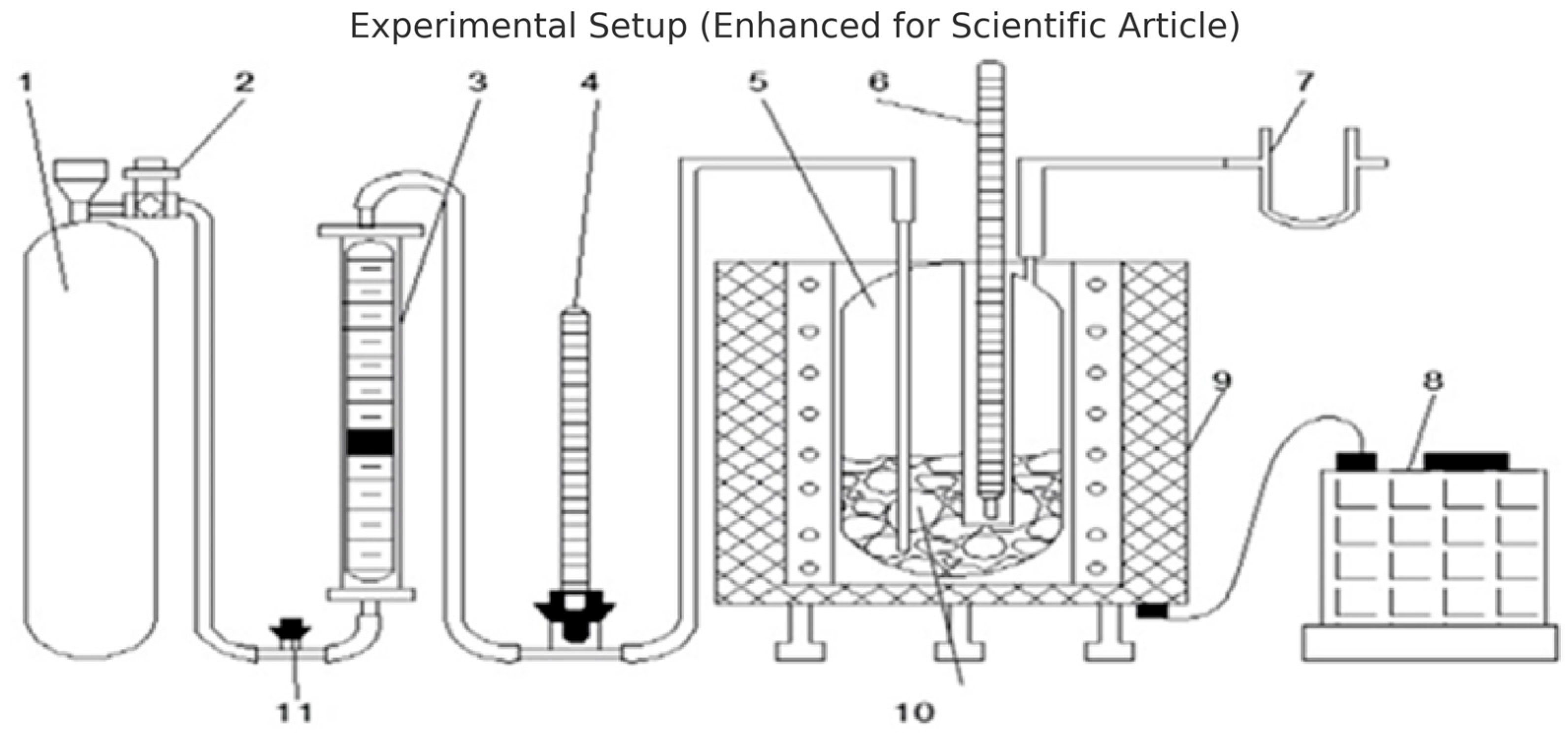 The core of the experimental setup consisted of two heating systems: (1) an electric heating furnace for controlled heating of samples, and (2) a water-bath heating system with a glass chamber, equipped with exhaust tubes and thermometers.