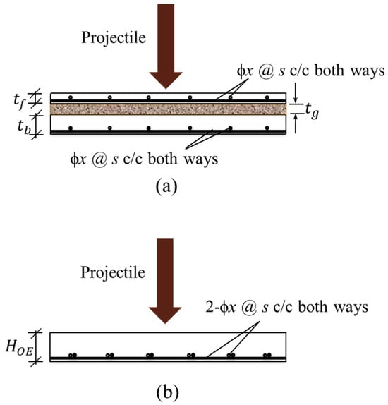 Siddiqui et al. [7] developed a method to evaluate double-wall containment systems’ reliability under impact loads generated by rigid projectiles. Their assessment focused on the outer reinforced concrete wall’s ballistic limit when struck by a specific projectile. The study concluded that the containment structure could be considered “sufficiently safe” as long as the projectile’s impact velocity did not exceed 65% of the wall’s ballistic limit. Dancygier et al. [8] experimentally studied the impact resistance of high-performance concrete (HPC) barriers against non-deforming projectiles. The research examined the effects of aggregate size, steel fiber content, and layering on impact performance. The study output showed that the strategic use of steel fibers and aggregates of larger sizes significantly enhanced the impact strength of different concrete layers. Siddiqui et al. [9] designed an experiment to model a containment system with two walls, focusing on the impact resistance of steel plates shielded with reinforced concrete walls to ogive and biconical-nose projectiles. Their study also evaluated the safety of the shielded steel plate against projectile impacts. Using the Monte Carlo simulation (MCS), they assessed the reliability of shielded steel plates subjected to impact velocities of different magnitudes. They also determined the failure probability of shielded steel plates under various failure scenarios. Wu et al. [10] performed high-speed impact tests on high-strength concrete panels reinforced with steel fibers (SFRHSC). These panels had liners of steel on the backside and, in some cases, a backfilled layer of sandy soil. Their study revealed that (i) SFRHSC/steel composite targets demonstrated enhanced impact resistance when supported by sandy soil; (ii) steel-lined targets outperformed SFRHSC-sand composite targets in impact resistance; (iii) adding a sand layer behind SFRHSC panels provided greater impact resistance benefits than steel liners; and (iv) incorporating steel fibers significantly minimized damage to the concrete targets. Wu et al. [11] investigated five types of reinforced concrete (RC) panels with liners (made up of steel), incorporating both monolithic and segmented designs. Their findings indicated that segmented targets of stacked-type offered greater impact resistance than segmented targets of spaced-type, having a similar thickness and subjected to the same projectile velocity. Feng et al. [12] experimentally and numerically studied the response of projectile impact on targets having two layers composed of ultra-high-performance FRC and armor steel. Their study evaluated residual penetration depth, failure modes, and perforation behavior, providing insights into the ballistic performance of UHPFRC plates.