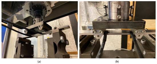 The photos of the real bending setup in tensile and compressive testing modes are shown in Figure 3a and Figure 3b, respectively. The relative positions of the PETs and supports are also clearly visible.