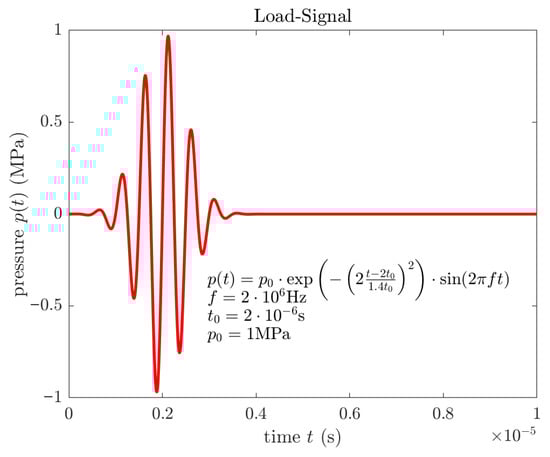 Representation of the time-dependent pressure signal employed to generate the elastic waves within the simulation model.