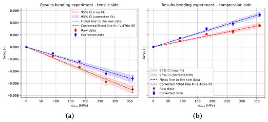For the compressive stress case, the results shown in Figure 13 exhibit an upward trend, as expected. The resultant AEC for this experiment is , with a standard deviation of .