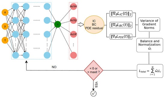 - Wang, S.; Teng, Y.; Perdikaris, P. Self-adaptive loss balanced physics-informed neural networks (lbPINNs). Neurocomputing 2022, 496, 11–34. [Google Scholar] [CrossRef]