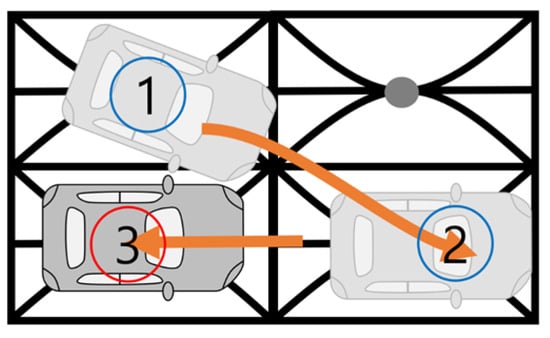 where Ns is the number of direction changes, and ws is a positive scaling factor that determines the penalty severity. For instance, in Figure 4, the vehicle experiences a direction change when transitioning from Grid 2 to Grid 3. At this point, the switching count Ns is incremented by one. Since Ns is an integer, S(n) increases in discrete steps. This discrete stepwise property creates smoothness layers in the search space. Paths with fewer turns lie in lower-cost layers, whereas tortuous paths are pushed into higher-cost regions. In practice, this reduces the likelihood of oscillatory behavior, where the planner alternates between directions unnecessarily. In addition, to avoid dominance over the base travel cost, S(n) is subject to the following upper bound, which ensures that switching penalties remain proportional to path length: