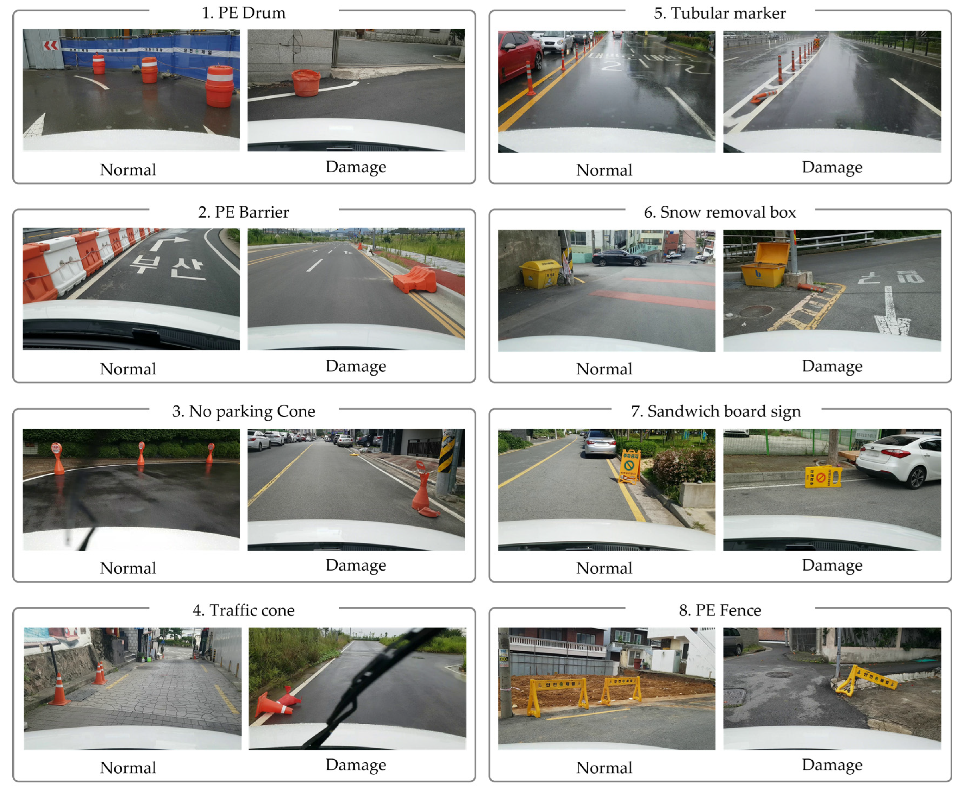 - AI-Hub. Local Government Road Facility Damage Dataset. Available online: https://aihub.or.kr/aihubdata/data/view.do?dataSetSn=71306 (accessed on 24 September 2025).