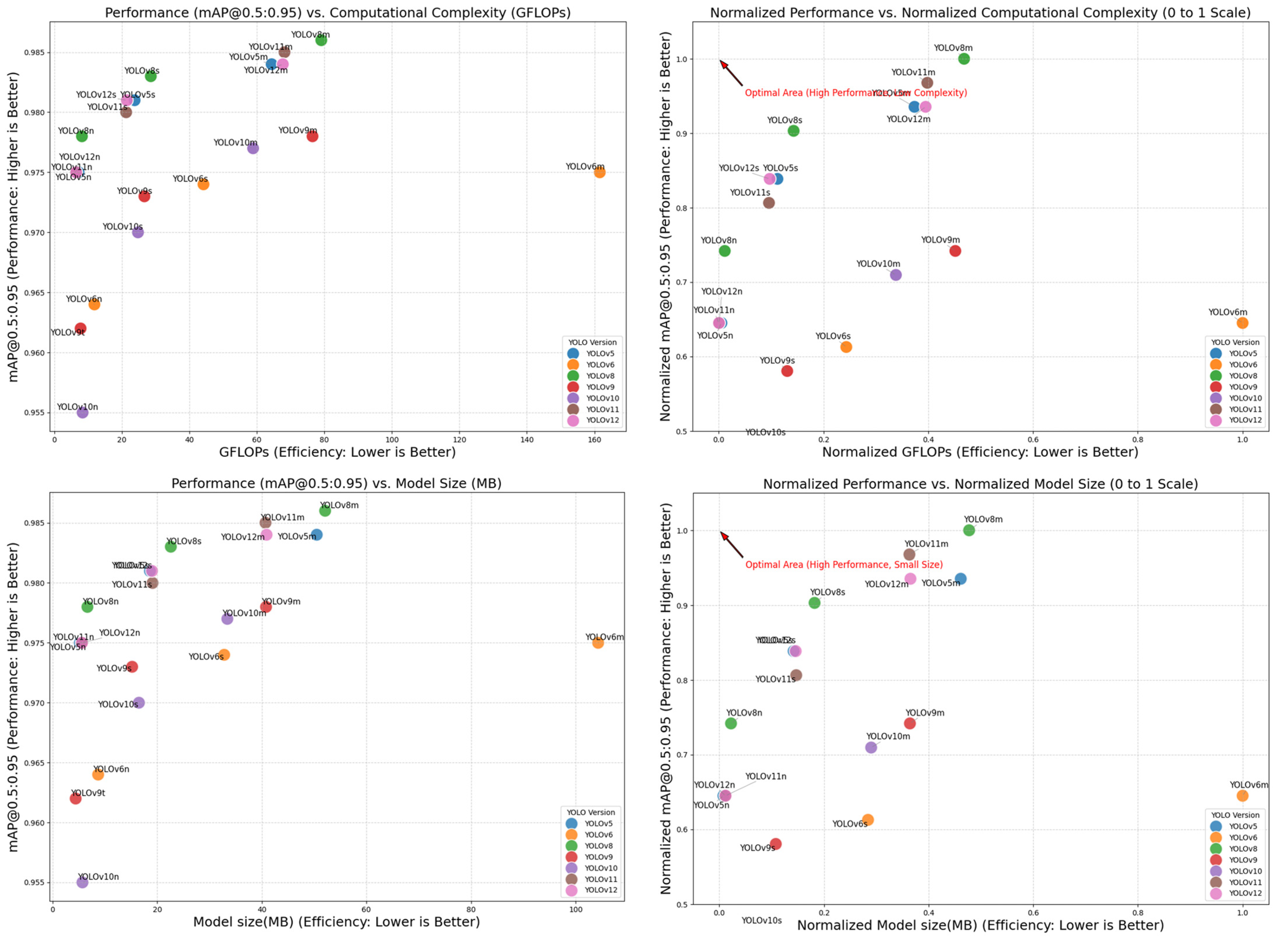 - Efficiency (E): This encompasses the computational cost and resource footprint of the model. Key efficiency metrics include the Inference Speed (FPS, Frames Per Second), Model Size (MB), and Computational Cost (GFLOPs). A higher FPS, smaller model size, and lower GFLOPs indicate greater efficiency.