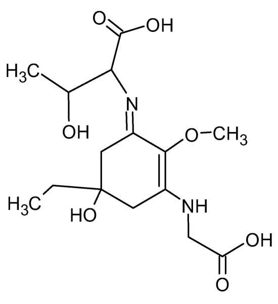 Chemical structure of the porphyra-334-mycosporine-like amino acid, drawn by the authors using ChemSketch based on [39].