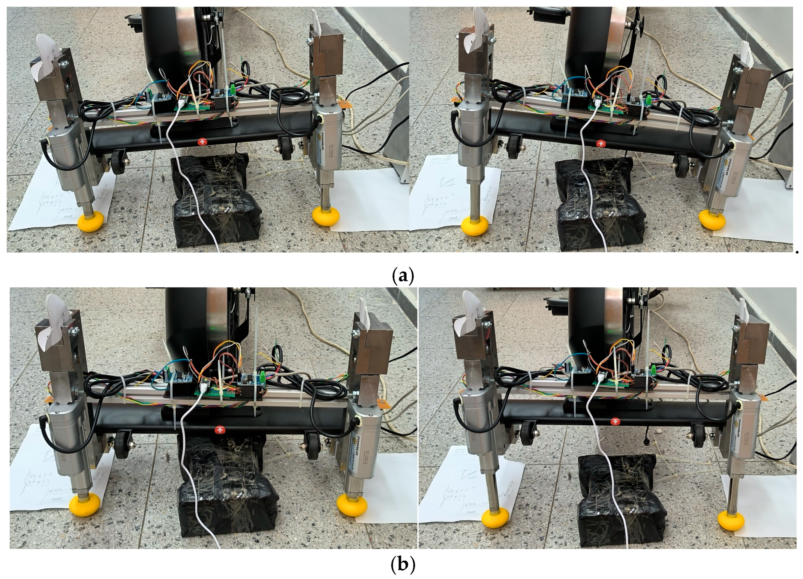 Figure 7. Mechanical motion platform in action: (a) roll and (b) pitch motion.