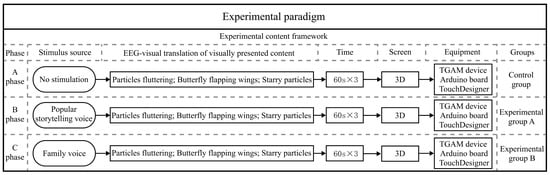 This study employed a longitudinal comparative experimental paradigm, consisting of three sequential phases: Phase A (no stimulus), Phase B (auditory stimulus with public storytelling), and Phase C (auditory stimulus with a family member’s voice).
