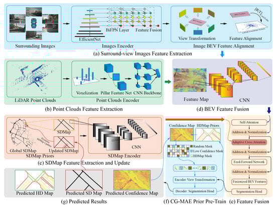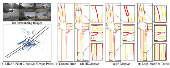 - Jiang, Z.; Zhu, Z.; Li, P.; Gao, H.-A.; Yuan, T.; Shi, Y.; Zhao, H.; Zhao, H. P-MapNet: Far-seeing map generator enhanced by both SDMap and HDMap priors. IEEE Robot. Autom. Lett. 2024, arXiv:2403.10521. [Google Scholar] [CrossRef]
