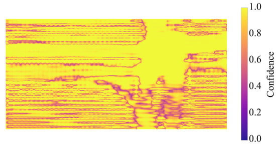 Visualization of ; darker indicates lower confidence, typically at distance, occlusions, or sparse coverage.