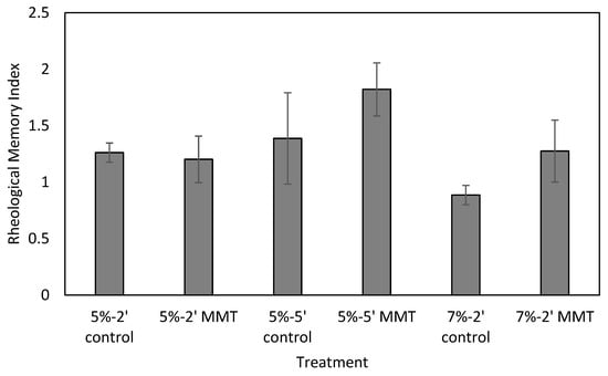 Distribution of mean rheological memory indices among the six treatments. Vertical bars denote standard errors of five replicates.