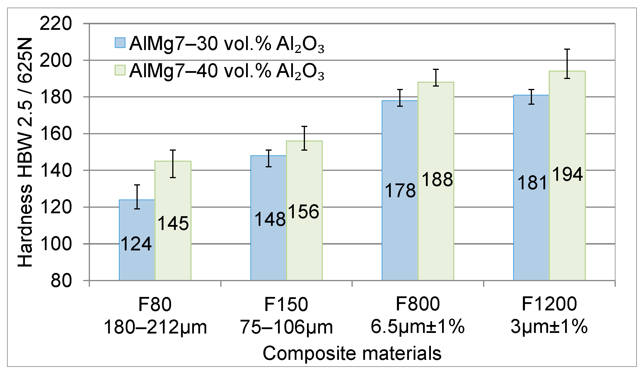 F80-30 vol.% Al2O3 | 133 | 168 | 147 | 359 | 310 | 293 |