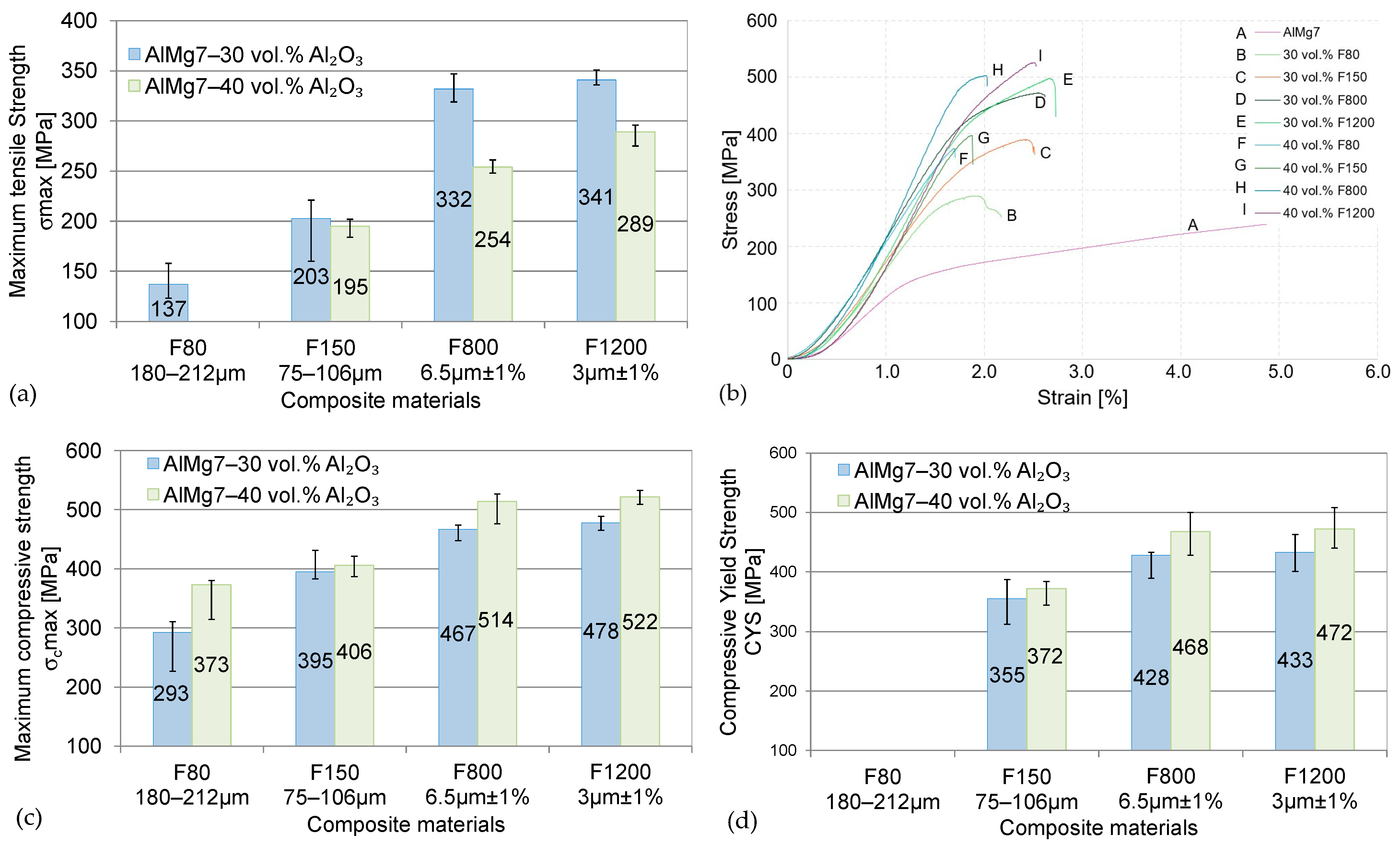 - Kurzawa, A.; Kaczmar, J.W. Bending Strength of Composite Materials with EN AC-44200 Matrix Reinforced with Al2O3 Particles. Arch. Foundry Eng. 2017, 17, 103–108. [Google Scholar] [CrossRef]