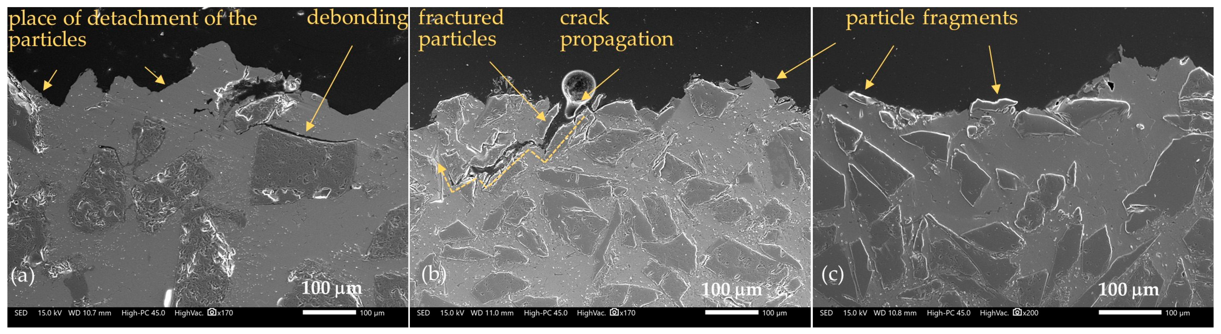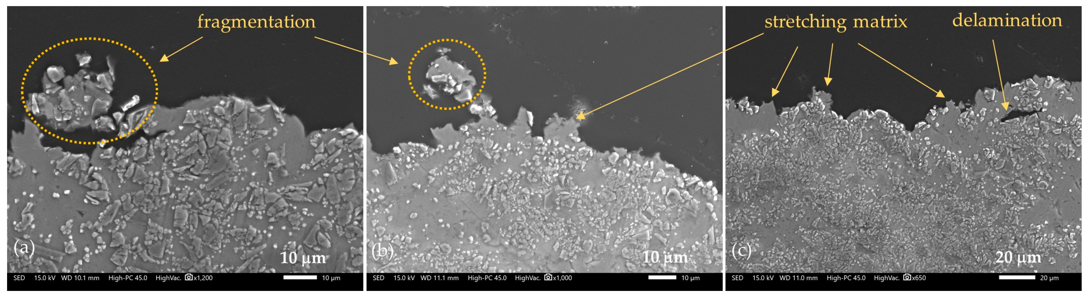 - Lee, T.; Lee, J.; Lee, D.; Jo, I.; Lee, S.K.; Ryu, H.J. Effects of particle size and surface modification of SiC on the wear behavior of high volume fraction Al/SiCp composites. J. Alloys Compd. 2020, 831, 154647. [Google Scholar] [CrossRef]
