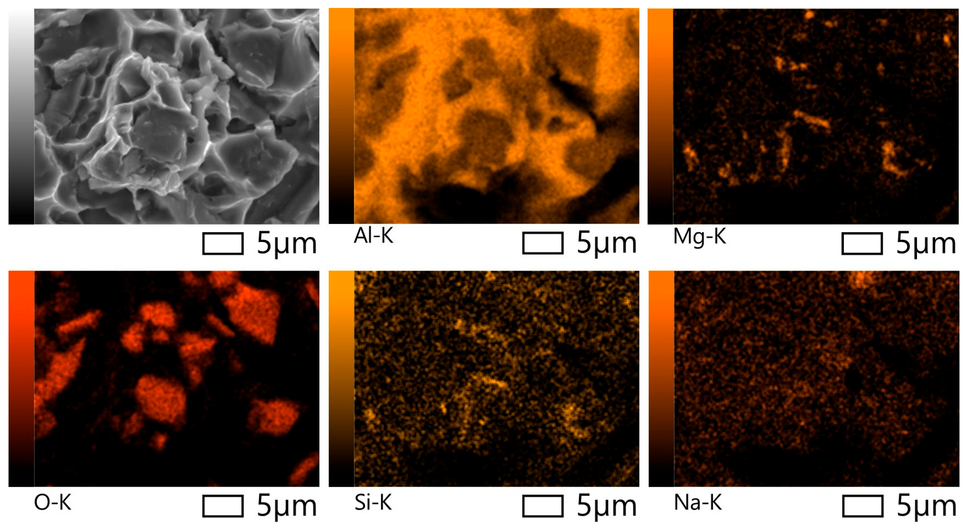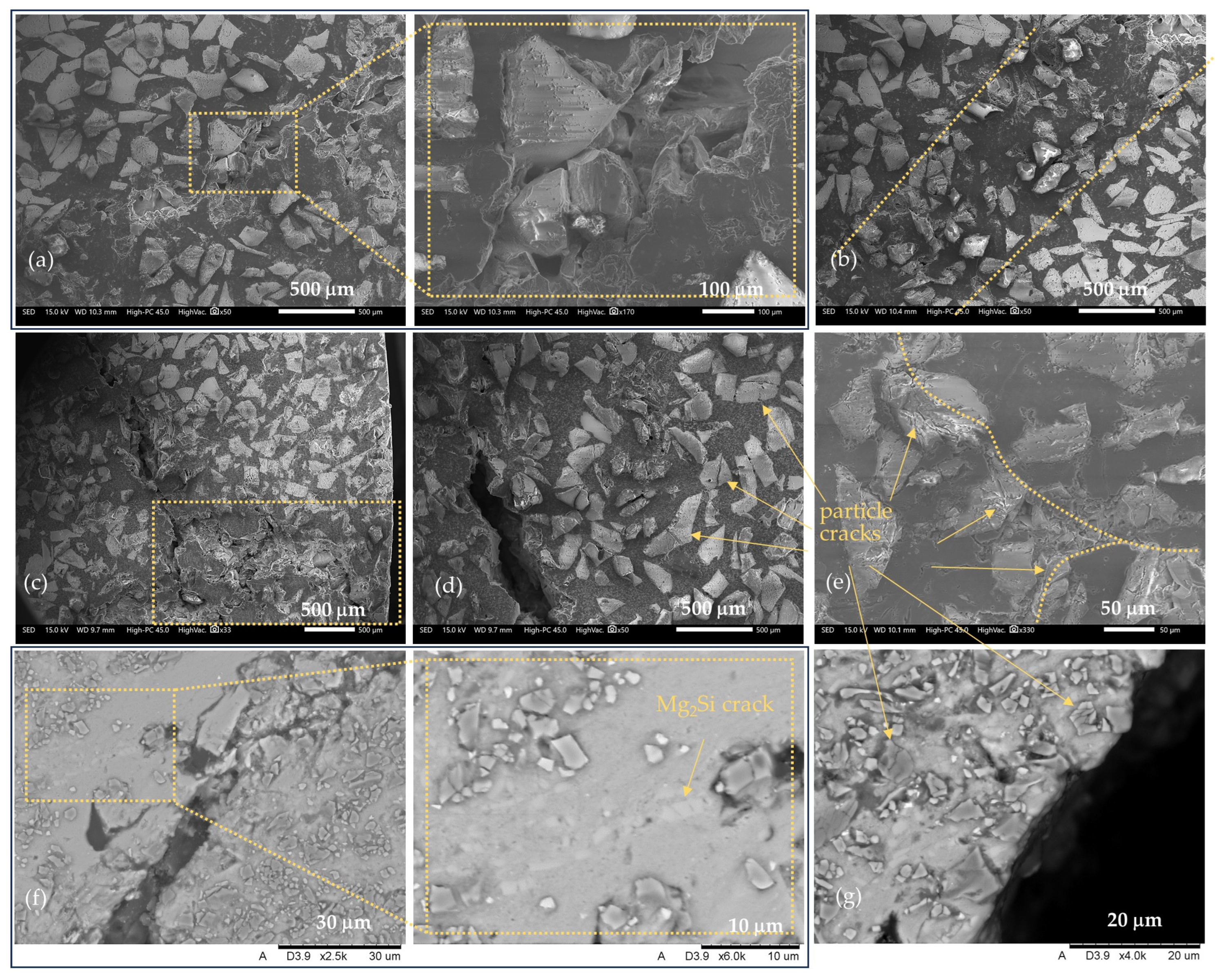 - Geng, L.; Zhang, H.; Li, H.; Guan, L.; Huang, L. Effects of Mg content on microstructure and mechanical properties of SiCp/Al-Mg composites fabricated by semi-solid stirring technique. Trans. Nonferrous Met. Soc. China 2010, 20, 1851–1855. [Google Scholar] [CrossRef]