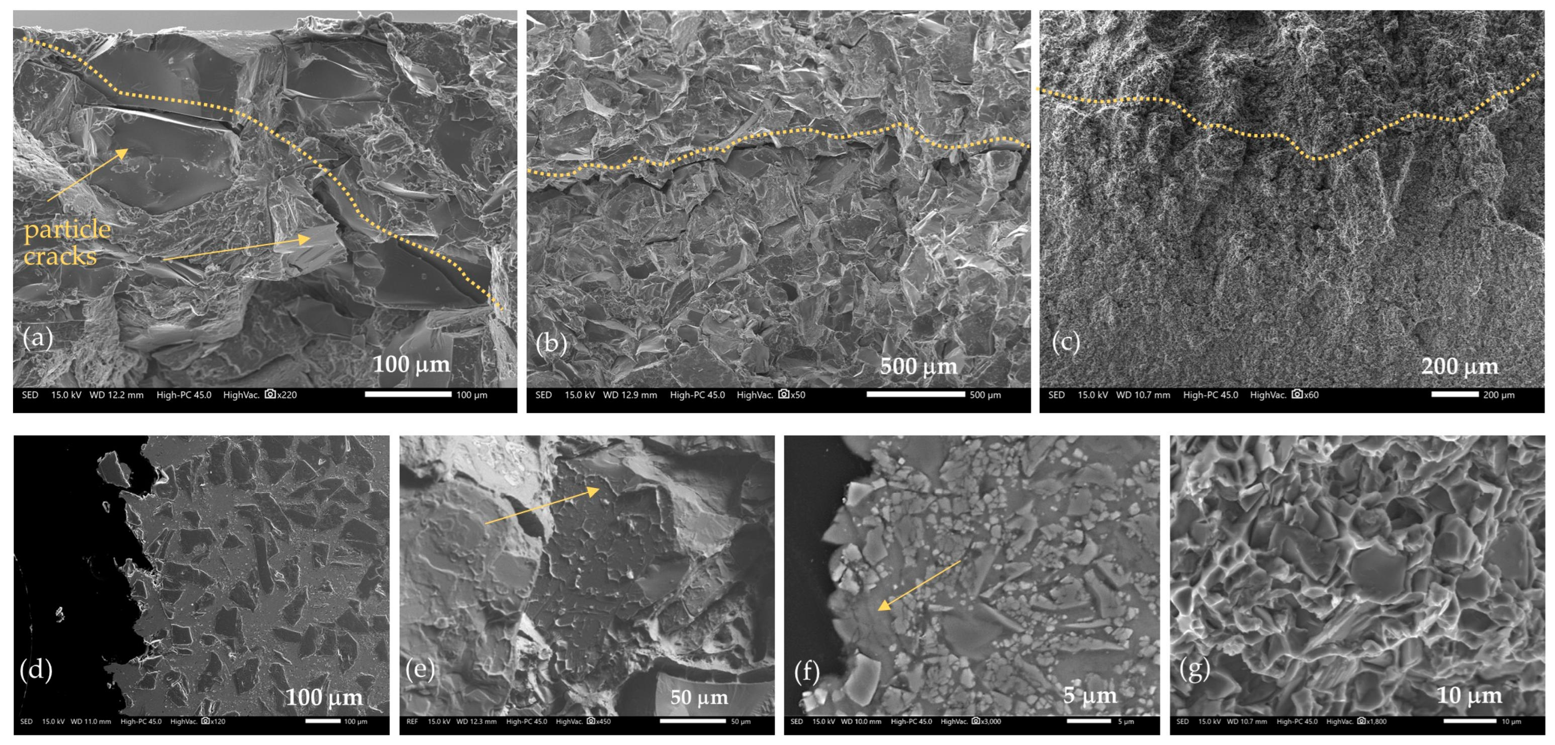 - Guo, X.; Guo, Q.; Nie, J.; Liu, Z.; Li, Z.; Fan, G.; Xiong, D.-B.; Su, Y.; Fan, J.; Zhang, D. Particle size effect on the interfacial properties of SiC particle—Reinforced Al-Cu-Mg composites. Mater. Sci. Eng. A 2018, 711, 643–649. [Google Scholar] [CrossRef]