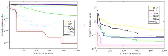where represents the position of the sparrow, denotes the worst solution on the j-th dimension of the current population’s search space, and corresponds to the optimal solution on the j-th dimension in the search space for the current population. When i > n/2, it indicates that the i-th joiner has not found a better solution and decides to explore other areas. Conversely, when i ≤ n/2, the joiner will monitor the discoverer, competing for the best solution, and may replace the discoverer to explore a larger search space.