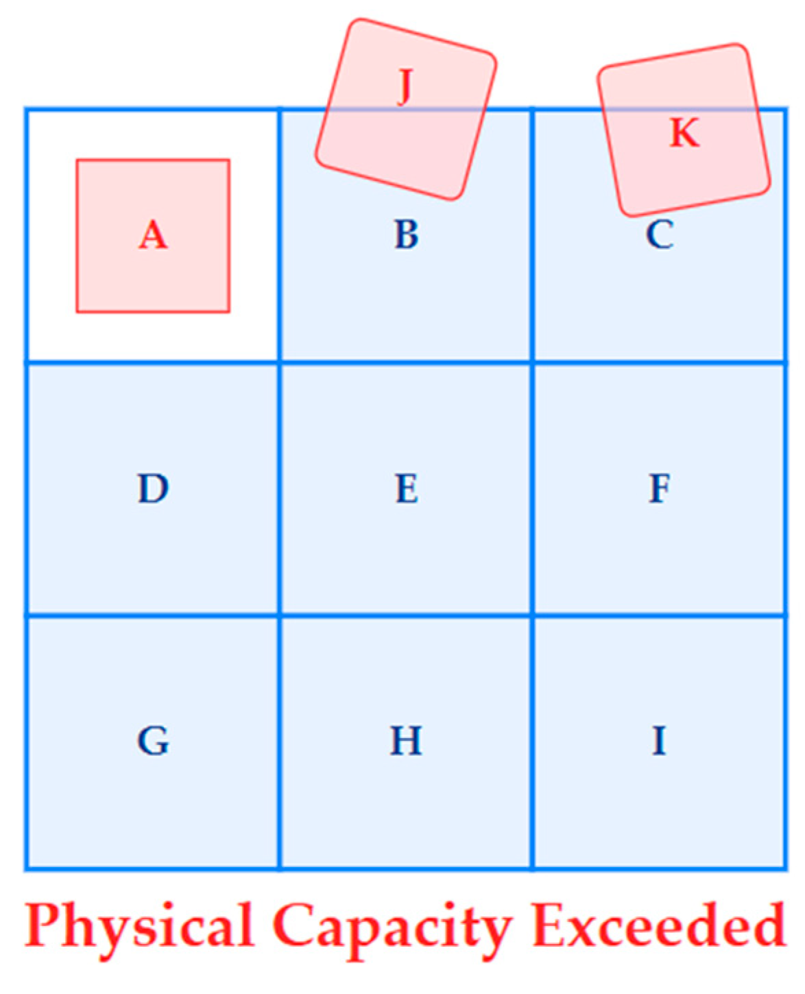 3 × 3 images of situations in which space is out of bound or impossible to deploy on a grid.