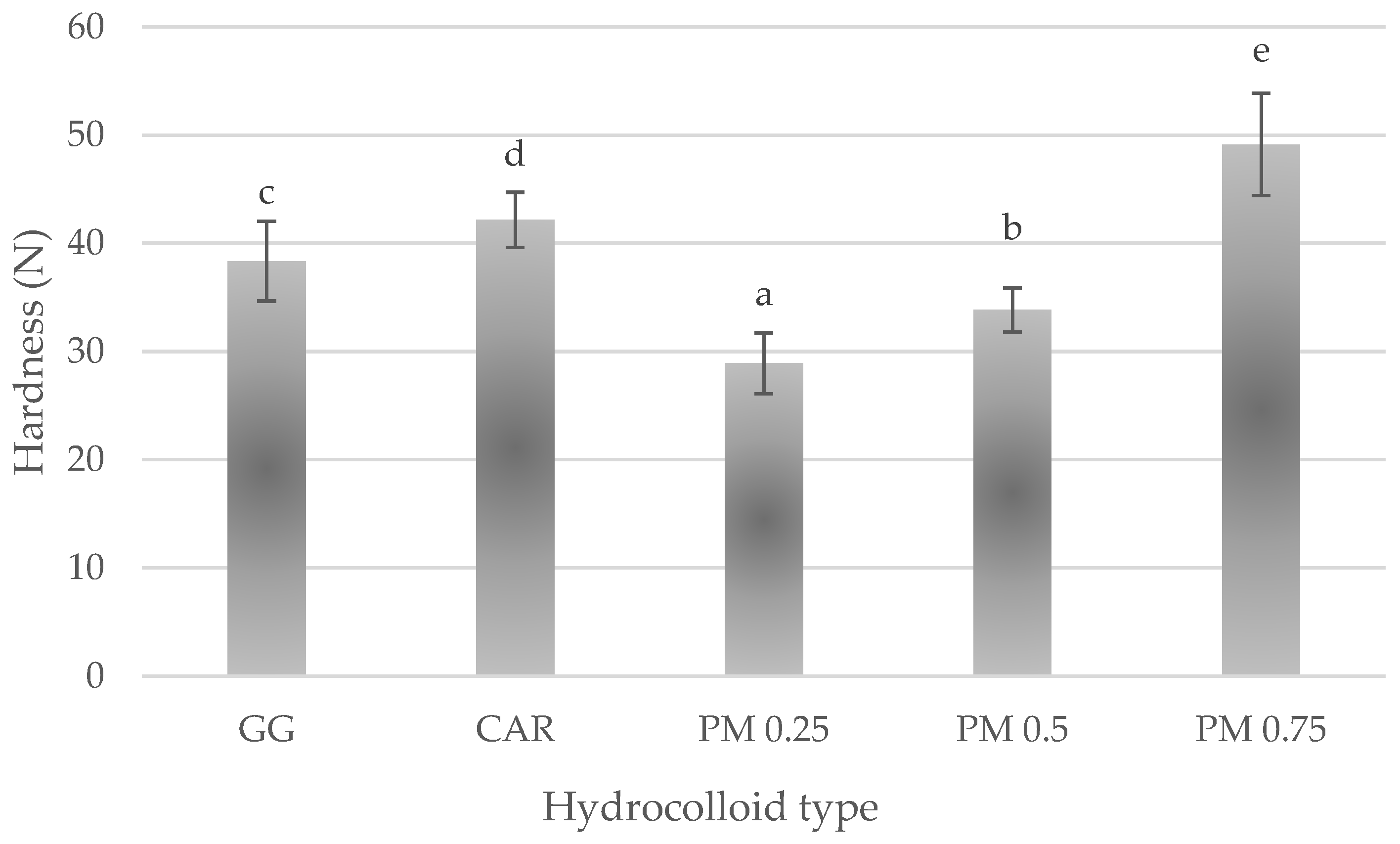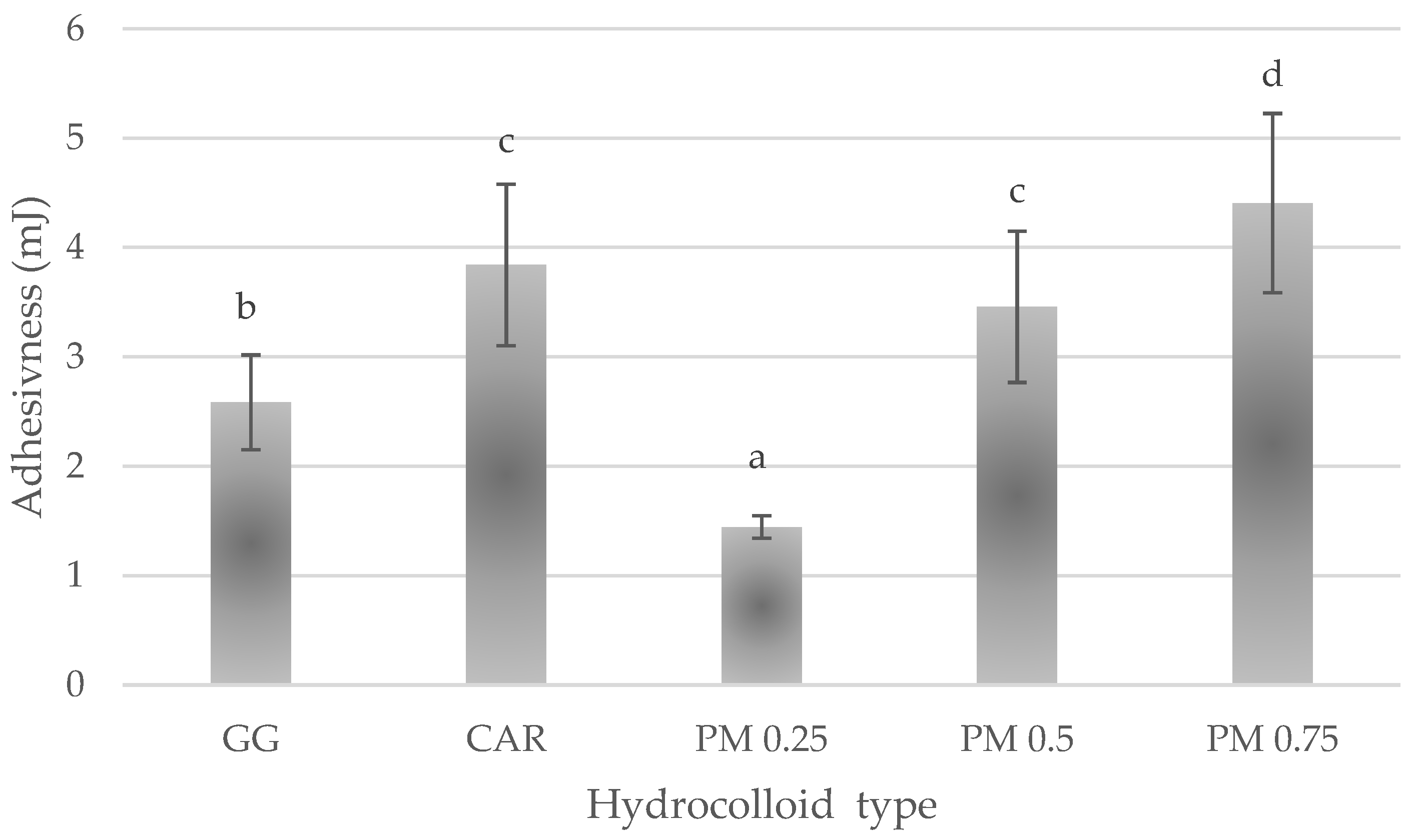 Hydrocolloid Type | Ov (%) | PS (%) | FDT (min) | EM (g/g) |