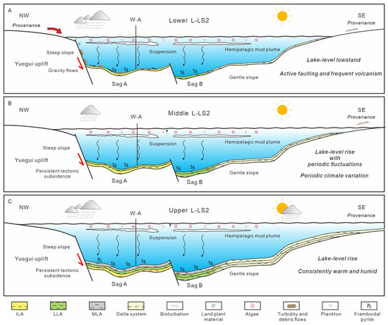 The L–LS2 records deposition in a relatively deep lacustrine setting characterized by a stratified water column and oxygen-deficient bottom waters. Sedimentation likely occurred below the storm wave base, with intermittent fluctuations in bottom-water conditions and redox states influencing facies development.