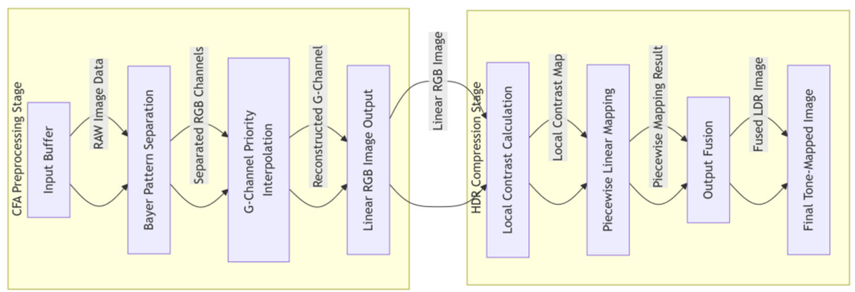 - HDR Compression: NAS-derived parameters configure piecewise linear mapping operators that dynamically compress high dynamic ranges while preserving tissue textures in low-light endoscopy.