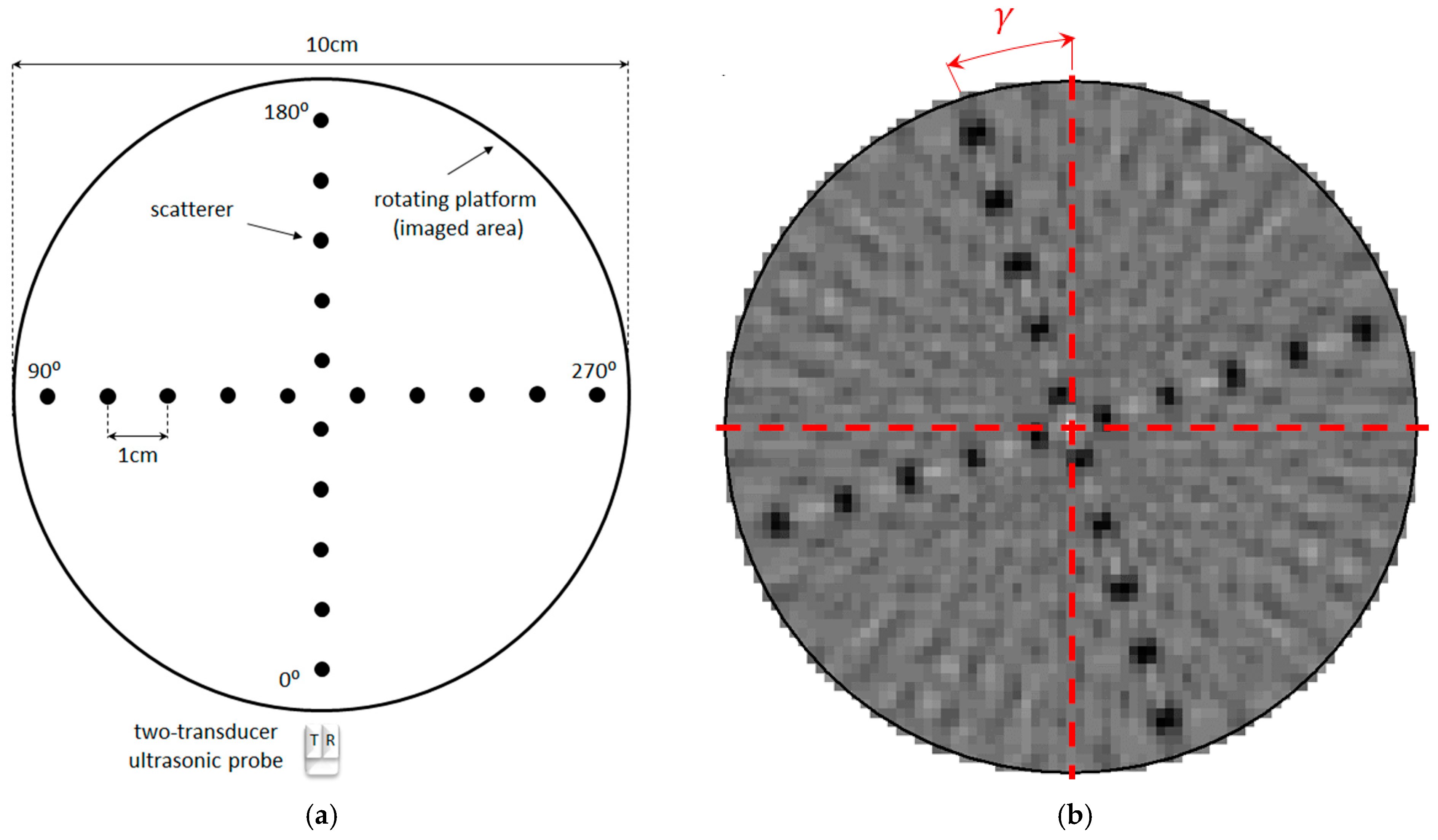 14. Dobrucki, A.B.; Opieliński, K.J. Adaptation of image reconstruction algorithm for purposes of ultrasound transmission tomography (UTT). Arch. Acoust. 2000, 25, 395–422. [Google Scholar]