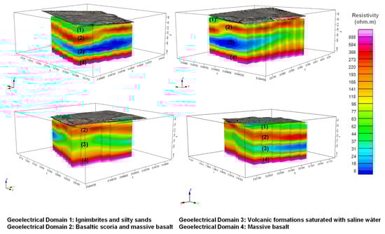 Likewise, in the Canary archipelago, the methodology can be applied in other coastal sectors where tourist pressure is high (e.g., Playa de las Américas, Puerto de la Cruz, Costa Teguise). Thus, ERT integrated into 3D models consolidates itself as a robust, efficient, and transferable tool, with the potential to become a standard for hydrogeological management in volcanic islands.