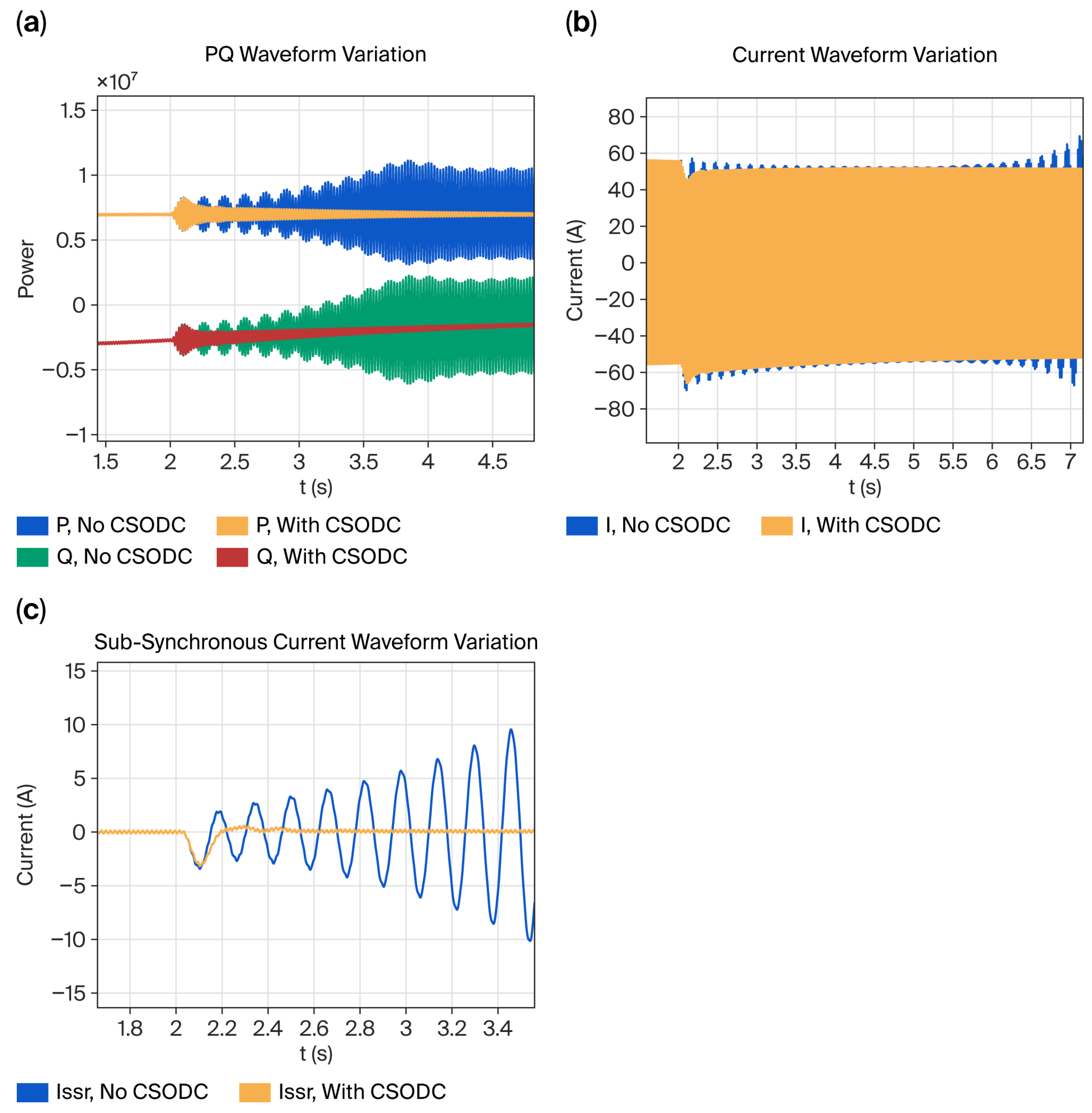 - An adaptive tuning strategy has been developed for optimizing the phase angle, gain coefficient, and filter parameters of the controller to suppress oscillations across diverse operational scenarios. This adaptive tuning framework ensures effective performance under varying grid conditions. Simulations demonstrate that the proposed centralized damping controller effectively mitigates sub-synchronous resonance and enhances system stability.