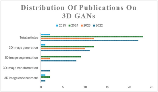 In this review, intensive research has been carried out on the existing literature. Past reviews give valuable insights into the 3D medical imaging sector up until the year 2022 [45,46,47,48,49,50,51]. A recent survey [52] covers the latest research works, but its main focus is on image enhancement only, overlooking the broader coverage of GANs across multiple image processing tasks like 3D image generation, segmentation, reconstruction, and clinical translation. A research gap lies in exploring the works that have been published from 2022 till now regarding 3D medical imaging that covers generation, segmentation, enhancement, translation, and reconstruction. It is important to study new research from after the year 2022 for a number of reasons:
