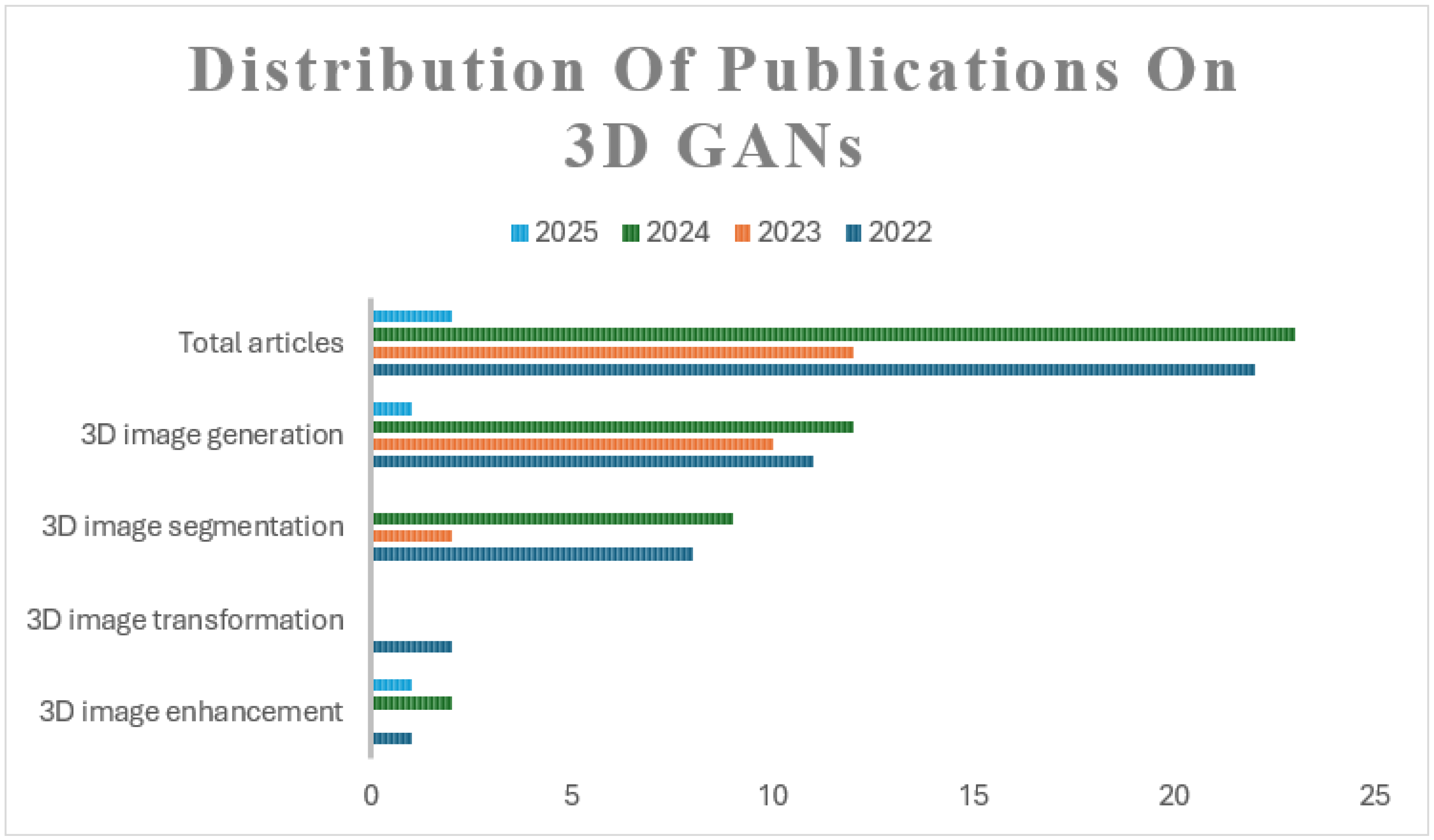 - The field relating to GANs in 3D medical imaging has exponentially evolved since 2022, introducing some new models, increased clinical applicability, and new tasks;