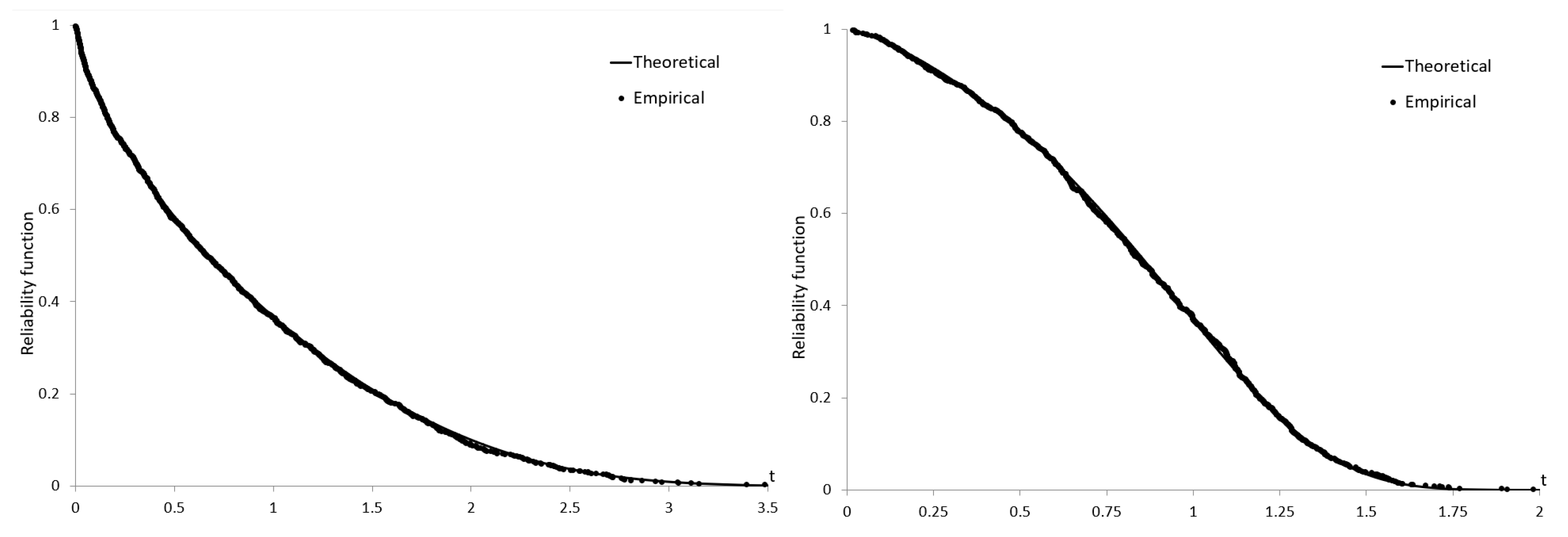 Figure 7 presents the empirical and theoretical reliability functions for sample size