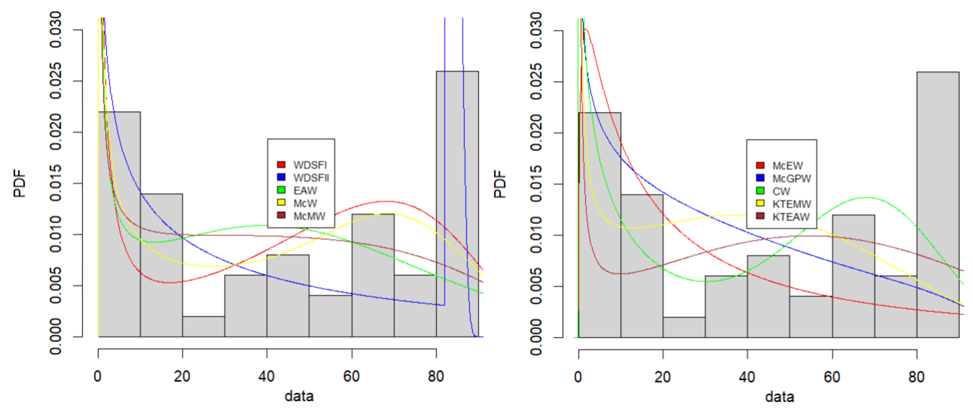 Looking through the literature searching for distributions that are modifications of the Weibull distribution, we find that the most dominant method of parameter estimation is the maximum-likelihood (ML) method. However, the question remains whether this choice is right. The younger the paper, the more often the parameters are estimated using other methods, e.g., the ordinary least-squares (LS) and weighted least-squares (WLS) ones; see, e.g., [