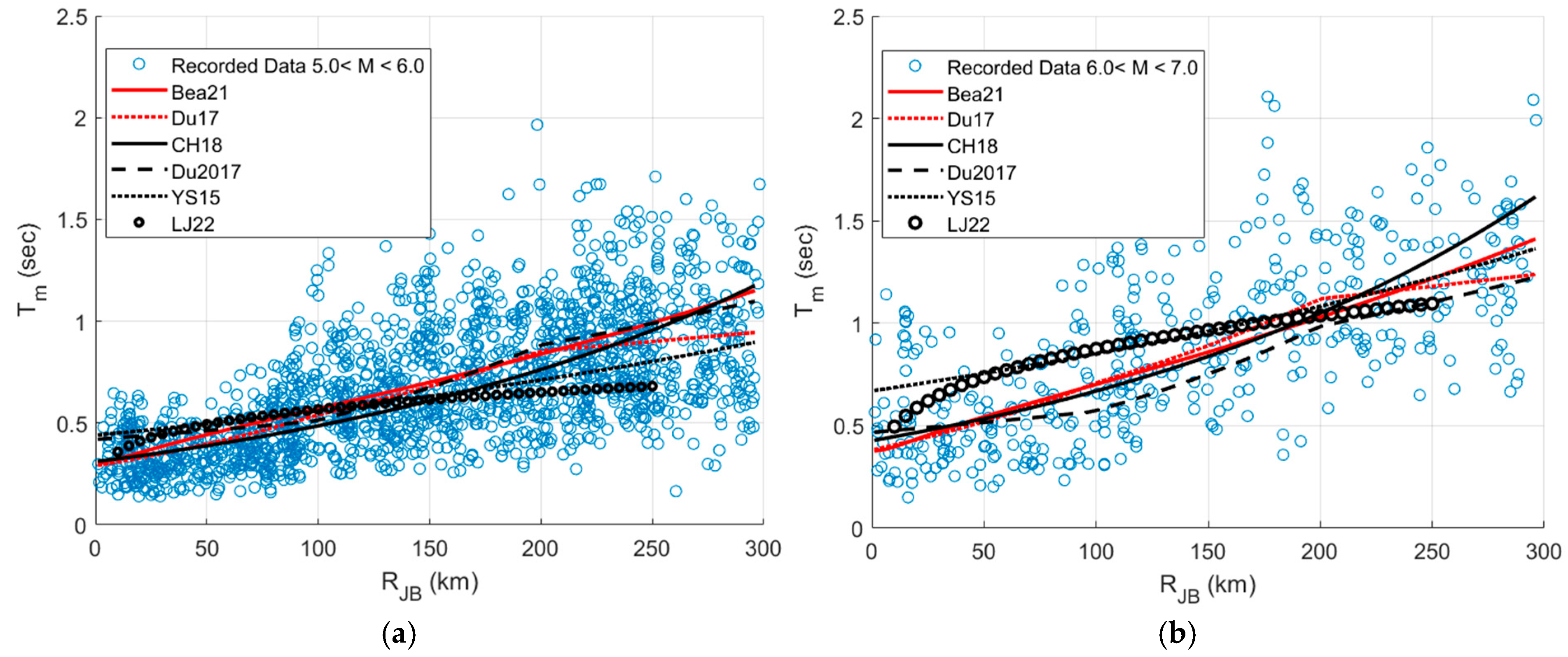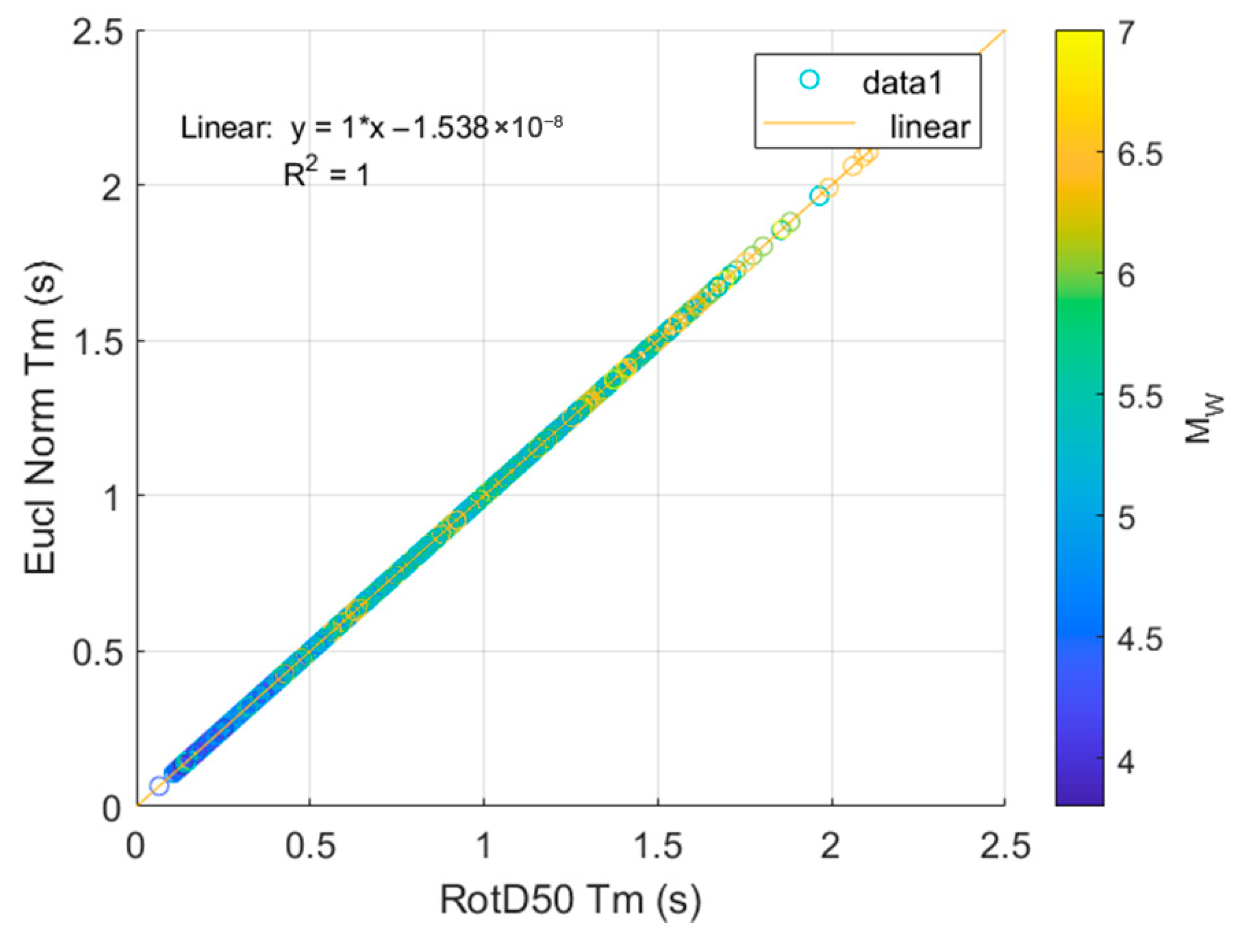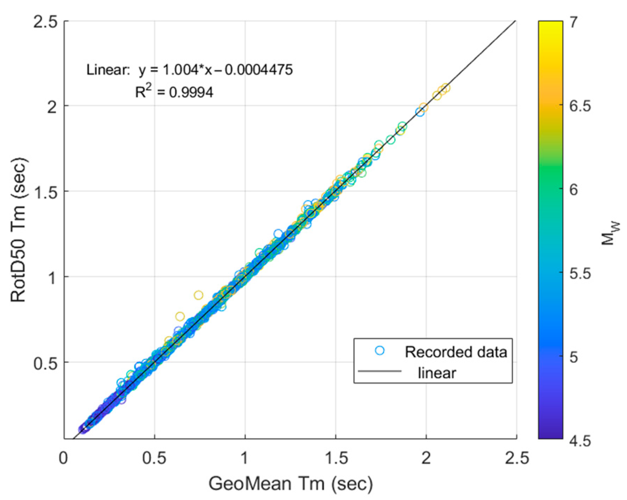 36]. The horizontal components of the ground motion records from these three earthquake events were used to compute the rotD50 Fourier spectrum and then calculate T