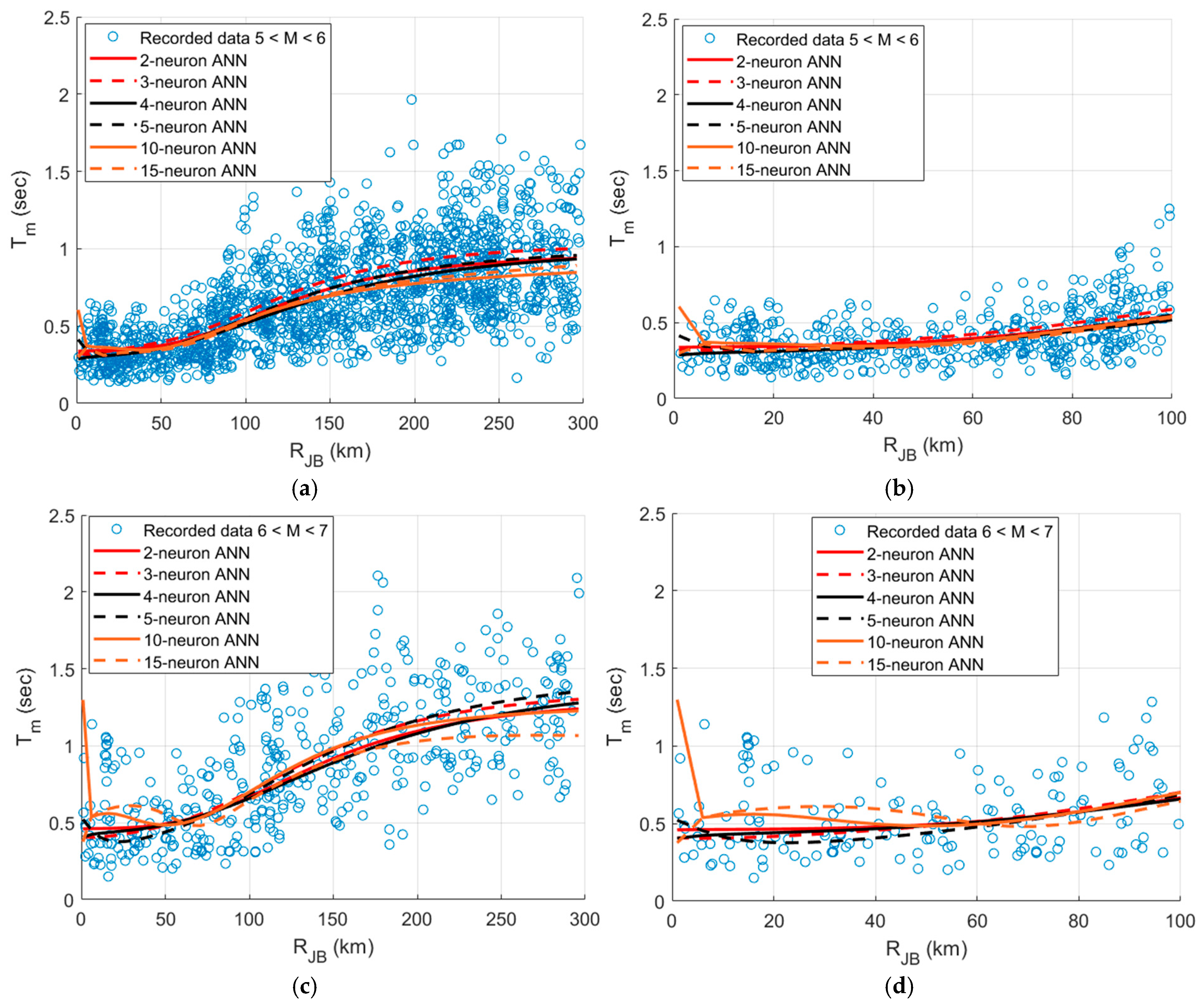 JB values larger than or equal to 20 km. On the other hand, it is recommended that 10- and 15-neuron ANN-based GMPEs should be avoided, as their predictions were unstable, especially at large earthquake magnitudes.