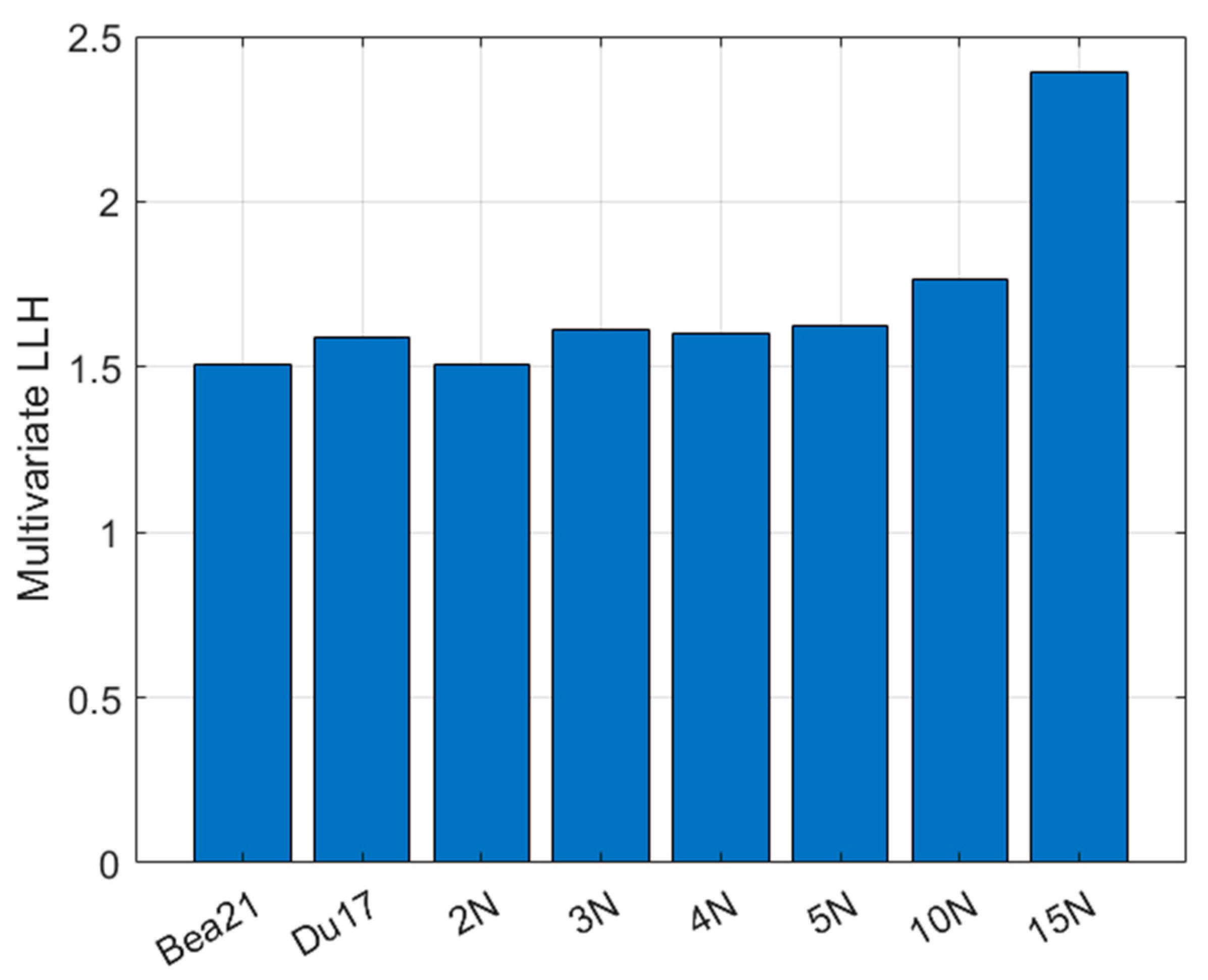 To evaluate the proposed GMPEs for the whole testing dataset used in this section, the Multivariate Loglikelihood (MLLH) approach, proposed by Mak et al. (2017) [