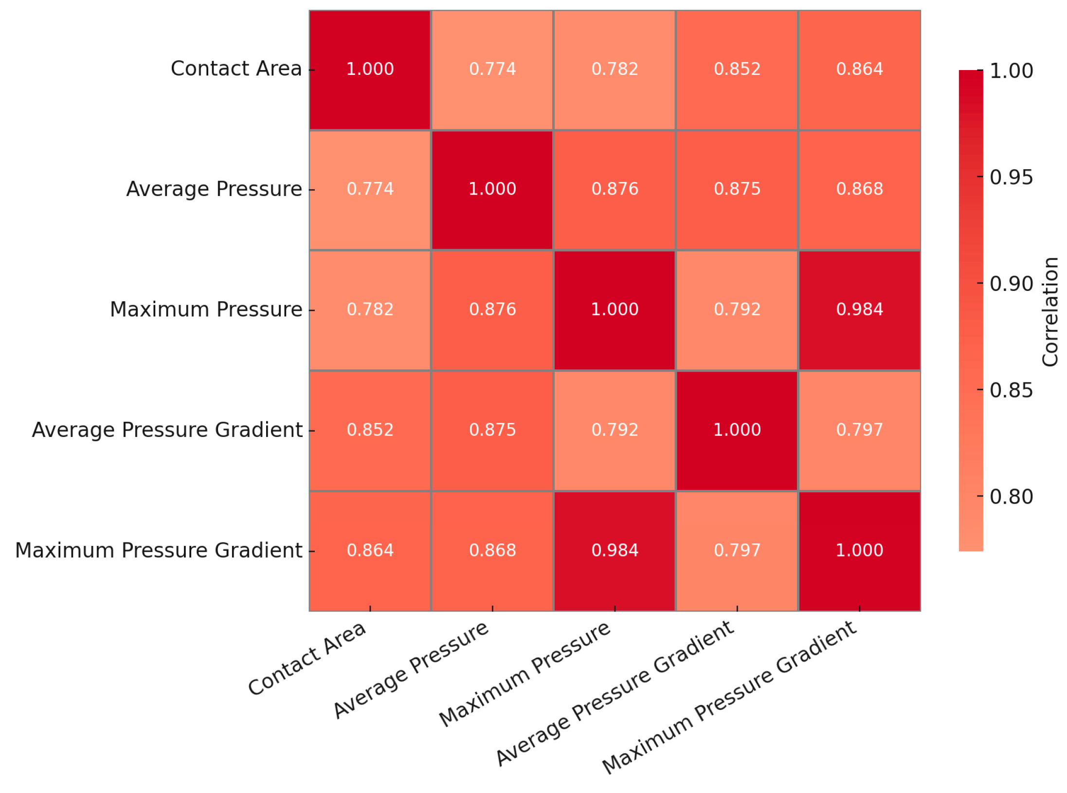 The processed dataset was analyzed using IBM SPSS Statistics 26.0. Correlation analyses examined relationships among objective pressure metrics, relationships among subjective comfort ratings, and correlations between objective metrics and subjective ratings.