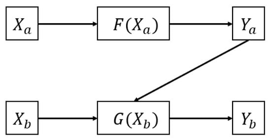 Forward flow of a Reversible Block (RevBlock). The input features are split into two halves, and , and processed through coupled transformations and to produce and . Here, F updates based on ’s context, while G updates based on the newly computed . This coupling enables invertibility, allowing exact recovery of the input from the output via Equation (10).