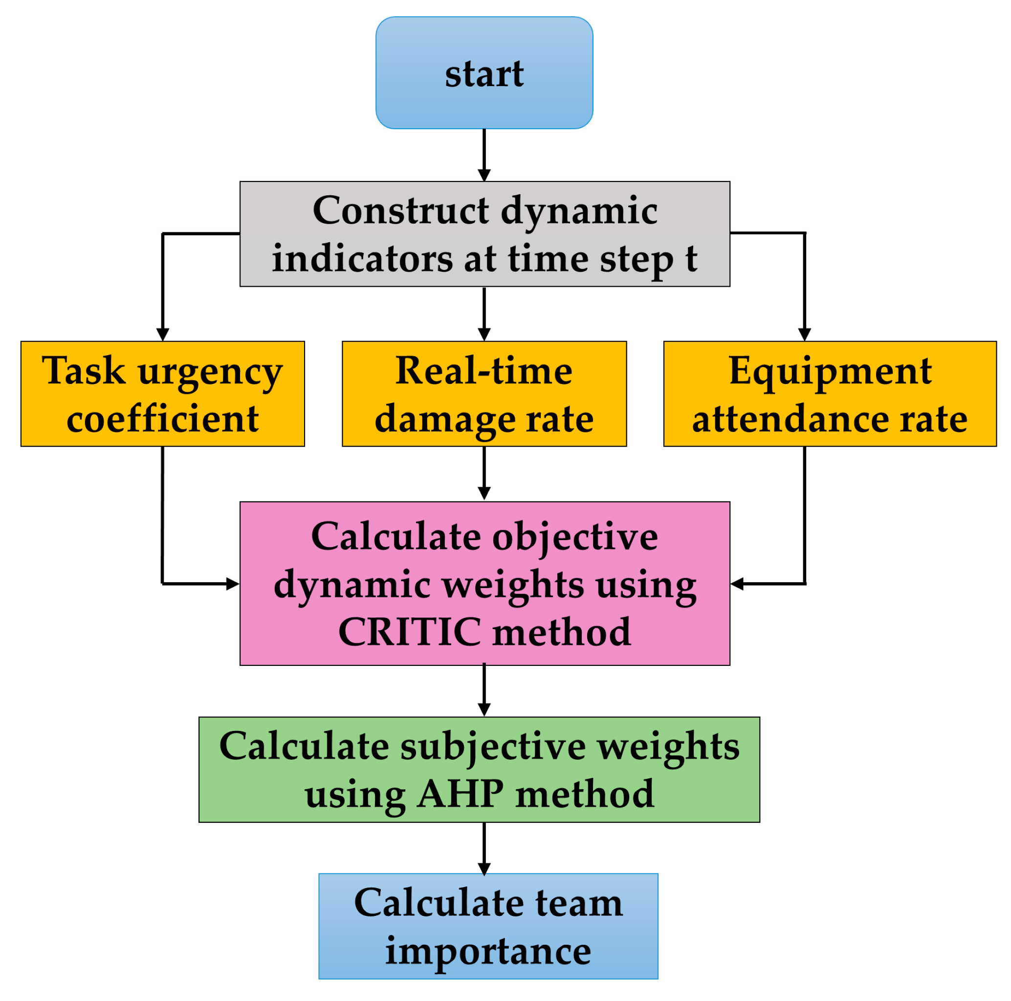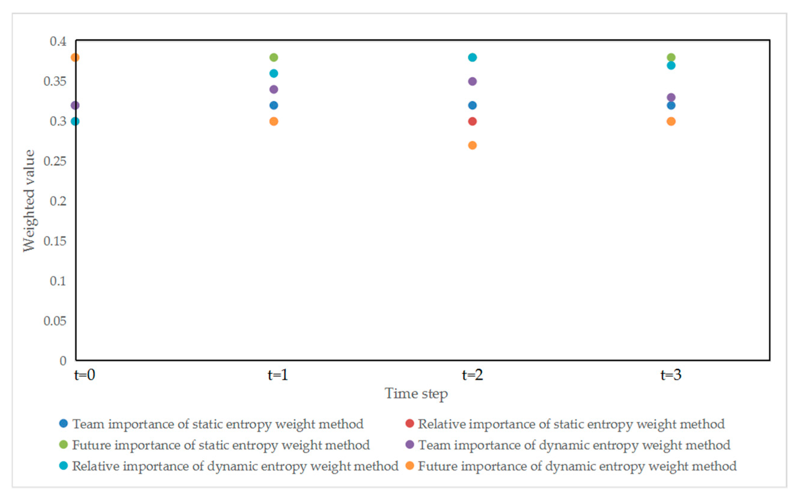 Time Step t | Standardized Indicators | Combined Weight | Team Importance |