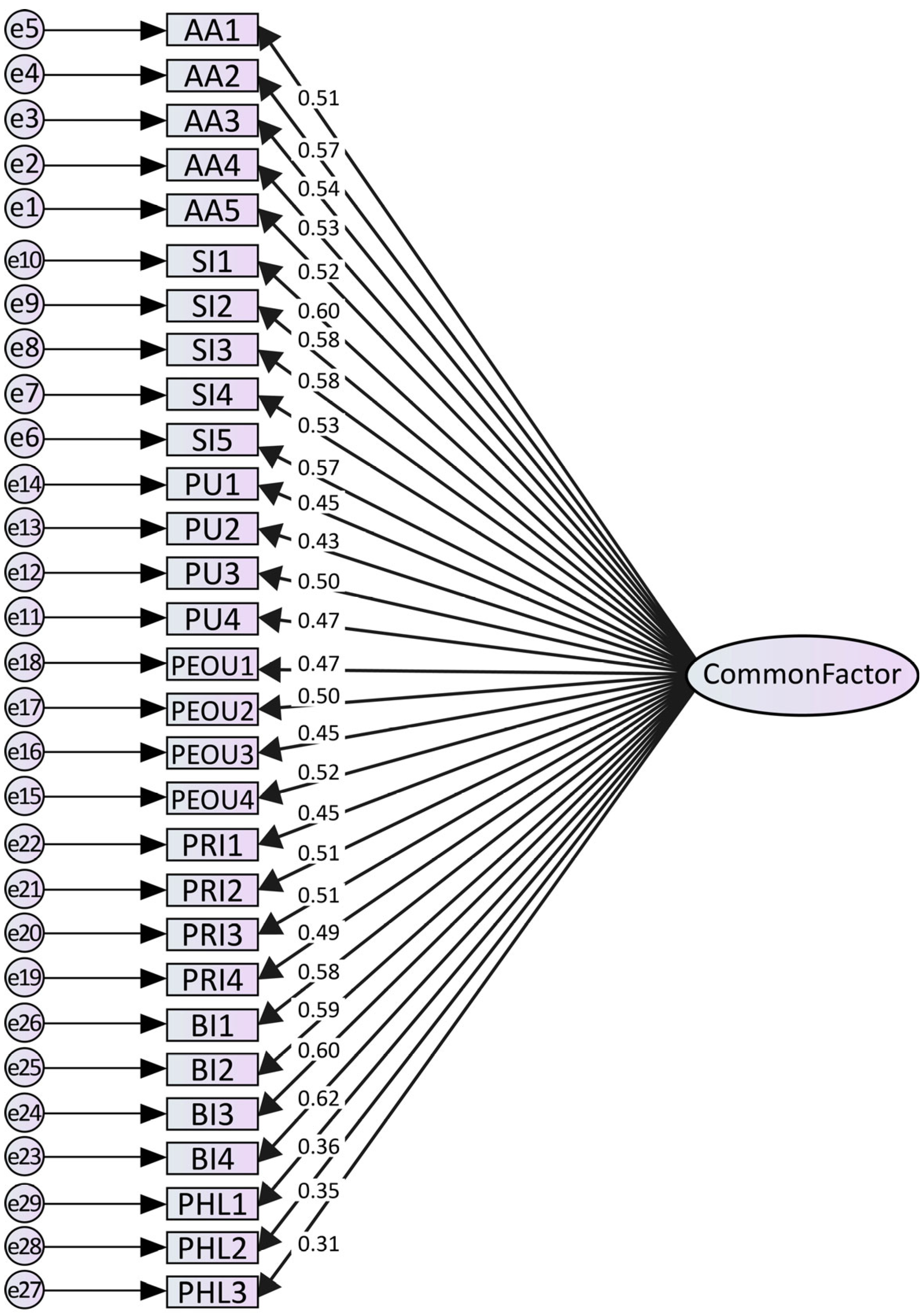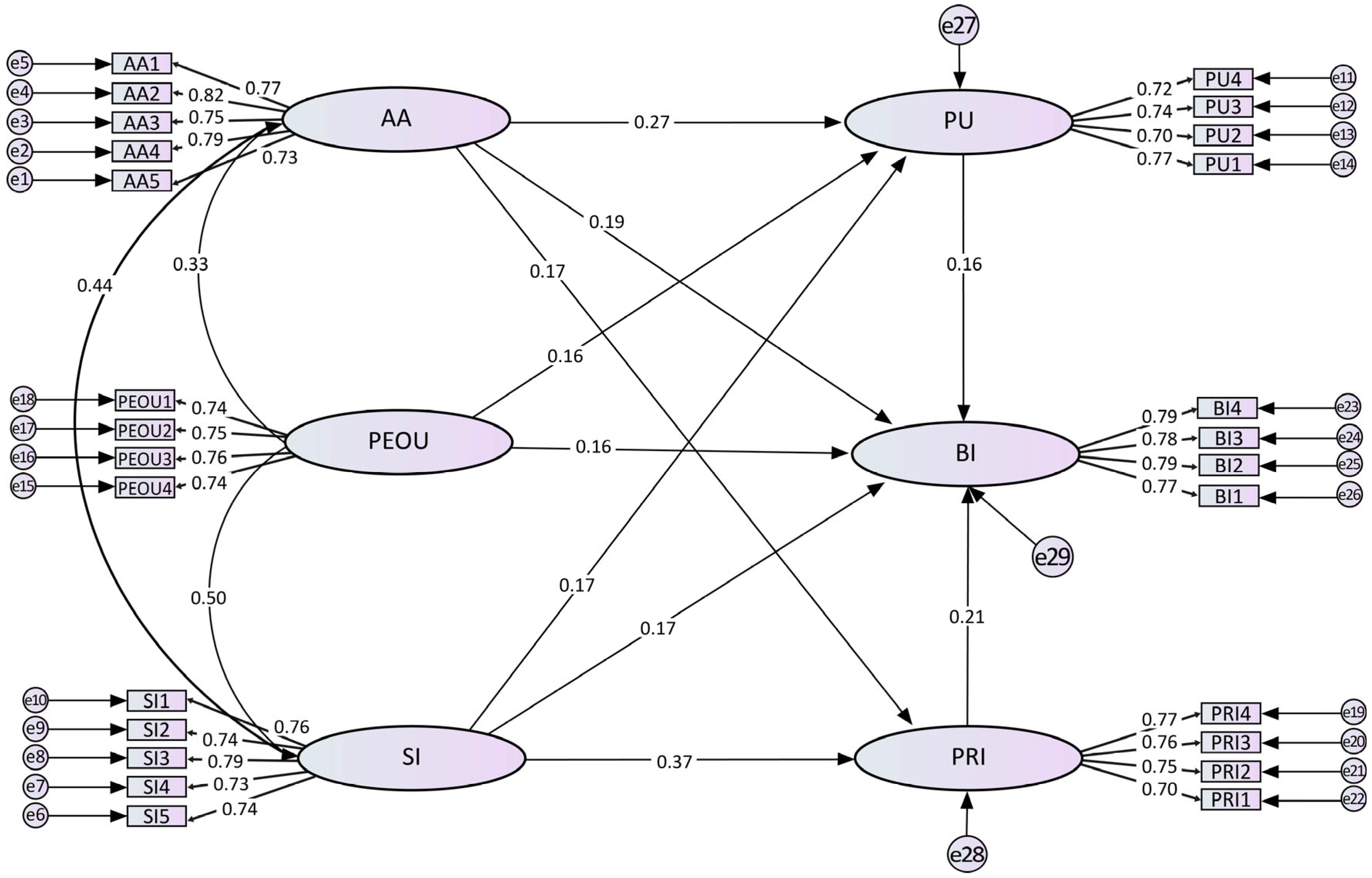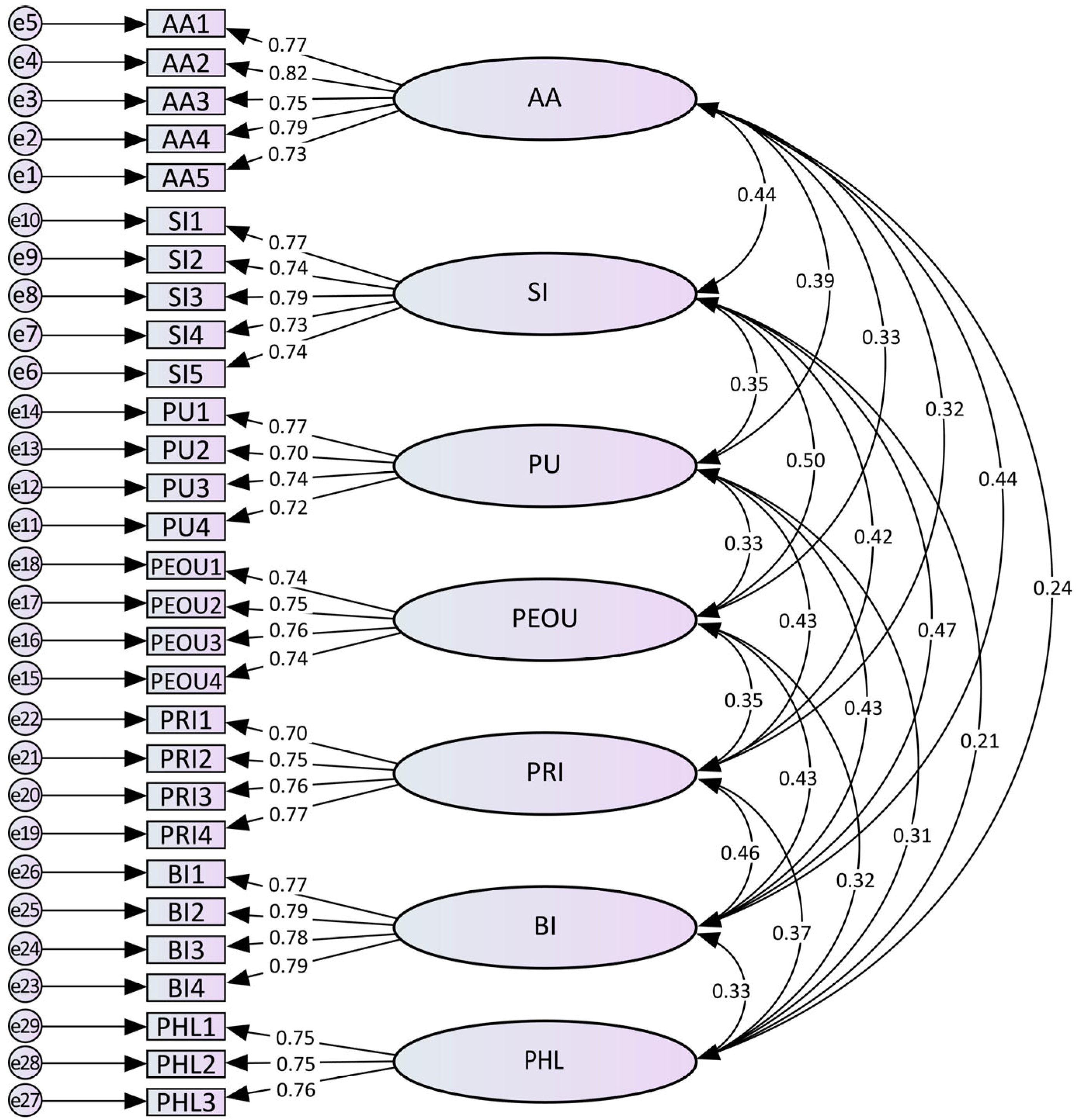 Variable | AA | SI | PU | PEOU | PRI | BI | PHL |
