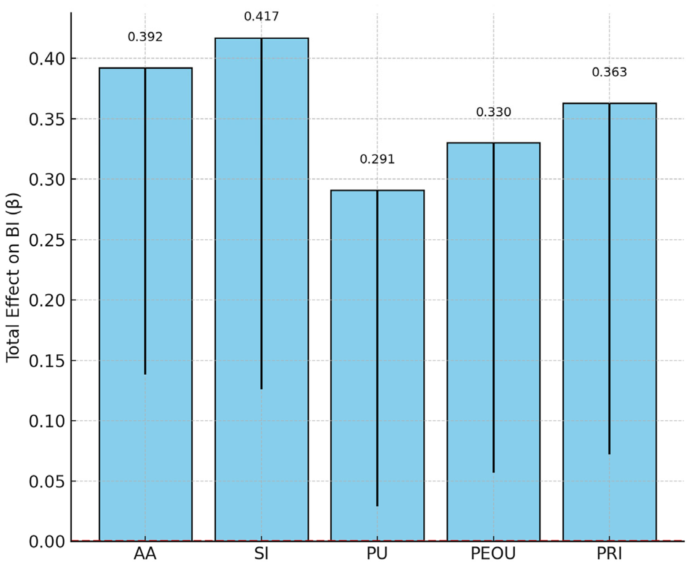 SI => PU => BI | Indirect Effect 3 | 0.027 | 0.005 | 0.071 | 0.015 |