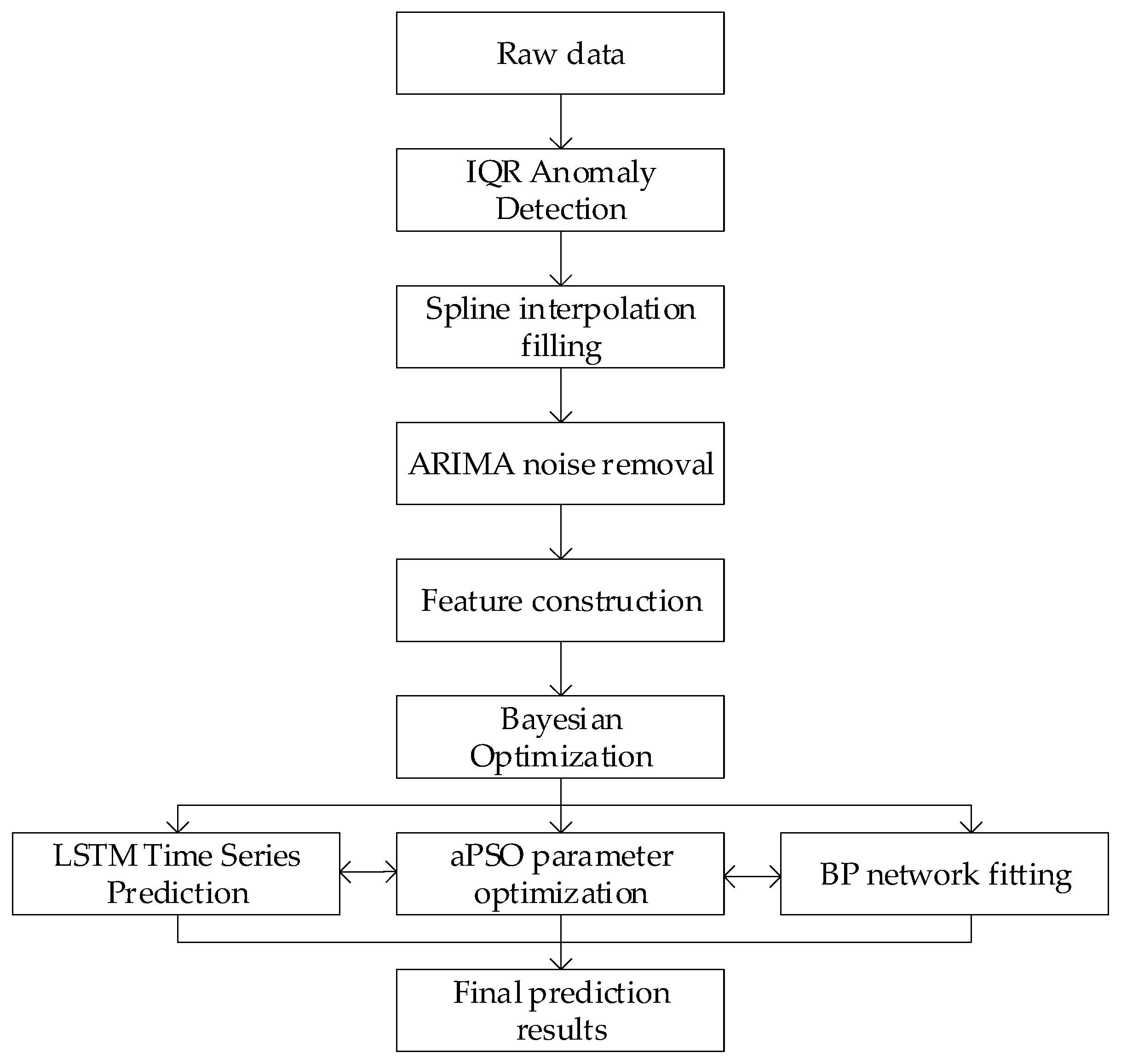 Upon refining the initial dataset through outlier removal and missing data imputation, the ARIMA model is employed to improve data stability and forecast stability by modeling and transforming the processed time series. As a classical statistical approach, ARIMA is extensively used in analyzing non-stationary time series. Its core principle involves applying differencing to remove trends and seasonal components, thus stabilizing the series, followed by modeling the linear dependency structure using autoregressive (AR) and moving average (MA) terms.