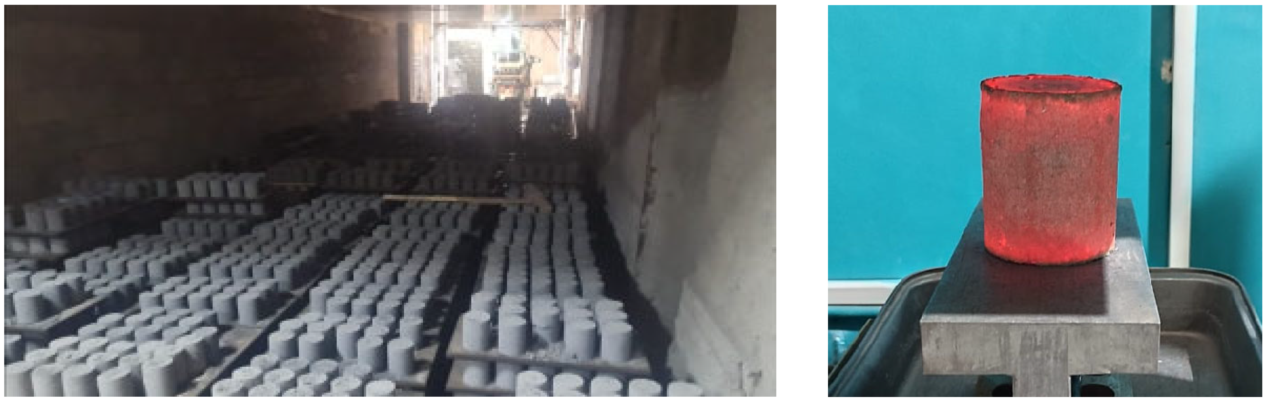 Figure 1. Thermal strength was determined by holding the briquettes in a muffle furnace at a temperature of (1100 ± 15) °C for 60 min, followed by measuring the residual strength and mass loss.